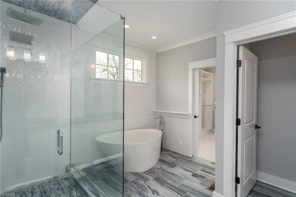 Tile shower in primary bedroom