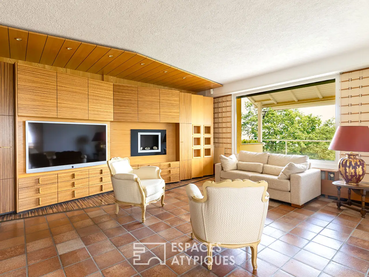 Situated in the highly sought-after Hunabuhl district of Niedermorschwihr, this architect-designed house built in 1975 offers 191 m2 of living space (282 m2 floor area) on 8.63 acres of land. In a dominant position, it enjoys exceptional panoramic views over the Alsace plain. Its generous volumes and rare features, such as an indoor swimming pool and a lift, make this a unique property that is just waiting for a contemporary refresh to reveal its full potential.From the moment you enter, the interior architecture stands out for its functional, luminous lines. The ground floor comprises a 40 m2 lounge opening onto a dining room with adjoining kitchen and pantry. An east-facing veranda extends the living room, offering a breathtaking view that changes with the seasons. A large overhanging terrace accentuates this privileged link with the natural environment. A bedroom, bathroom and hallway complete this level.A lift provides easy access to the first floor. This is home to three bedrooms, one of which has a second adjoining space offering additional conversion potential, as well as a shower room. Downstairs, the basement houses a heated indoor swimming pool with direct access to the garden via large bay windows, as well as a shower, a wine cellar and a garage with motorised door. The outside space is an invitation to relax and contemplate, in a peaceful, leafy setting.Just 15 minutes from Colmar, this rare property for sale combines an exceptional geographical location, a unique architectural design and great potential for personalisation. An atypical place to live that will appeal to lovers of architecture, space and uninterrupted views.Shops 10 minutes' drive awayNursery and primary schools 5 minutes' drive awayIngersheim secondary school 10 minutes' drive awayBus 2 minutes' walk awayRD83 10 minutes' drive awayRailway station and motorway 15 minutes awayREF. 1543Additional information* 7 rooms* 4 bedrooms* 1 bathroom* 1 bathroom* 1 floor in the building* Outdoor space : 863 SQM* Property tax : 421 €Energy Performance CertificatePrimary energy consumptione : 200 kWh/m2.yearHigh performance housing*A*B*C*D*200kWh/m2.year61*kg CO2/m2.yearE*F*GExtremely poor housing performance* Of which greenhouse gas emissionse : 61 kg CO2/m2.yearLow CO2 emissions*A*B*C*D*61kg CO2/m2.yearE*F*GVery high CO2 emissionsEstimated average annual energy costs for standard use, indexed to specific years 2021, 2022, 2023 : between 3030 € and 4130 € Subscription IncludedAgency feesThe fees include VAT and are payable by the vendorMediatorMediation Franchise-Consommateurswww.mediation-franchise.com29 Boulevard de Courcelles 75008 ParisInformation on the risks to which this property is exposed is available on the Geohazards website : www.georisques.gouv.fr