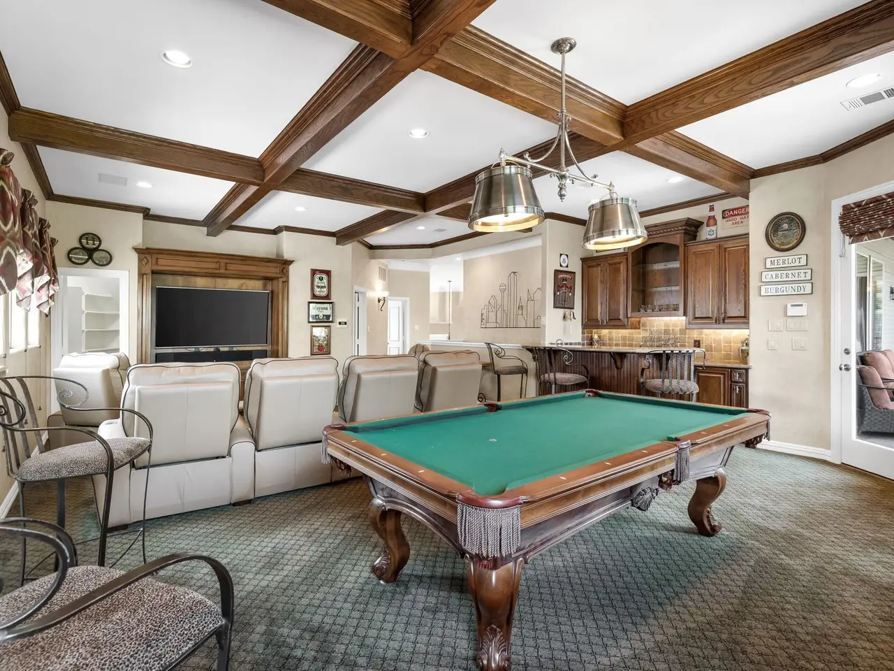 Game & media room with bar and arcade room