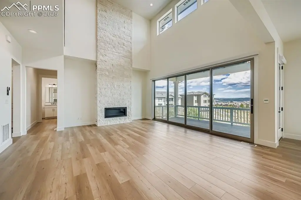 The elegantly crafted Fleetwood Prairie home features a luxurious blend of indoor and outdoor living spaces that are perfect for relaxing and entertaining. The inviting two-story foyer and extended hallway flow past the private office to the grand, two-story great room with alluring views of the city, beyond the expansive covered patio. Don't miss the beautiful Eldorado white elm stone, floor-to-ceiling fireplace! The carefully designed kitchen, overlooking a bright, casual dining area, features JennAir appliances, a sizable walk-in pantry, as well as ample counter and cabinet space that surrounds an oversized center island with a breakfast bar. Highlighting the superb primary bedroom suite is an impressive 16x10 walk-in closet and a primary bath enhanced with dual vanities, a large soaking tub, a luxurious shower, linen storage, and a private water closet. Secondary bedrooms, one with a sizable closet, sharing a hall bath and two with walk-in closets and a private shared bath, are central to a versatile loft space. The second floor also features easily accessible laundry, while another bedroom with Pikes Peak views and bathroom can be found off the loft space. A large unfinished basement offers a separate walkout deck and provides additional room for storage. HOA dues include manned security, snow removal on private streets & trash removal. Walking distance to the Garden of the Gods Resort and Kissing Camels Golf Club, which offers numerous amenities including spa, gym, swimming pools, hot tubs, pickleball & tennis courts, and fine dining, with club membership. Plentiful hiking & biking trails close by. Excellent location only minutes from downtown, Manitou Springs, & Kissing Camels Golf Club. Rare opportunity to acquire a view property in exclusive Red Rock Point at Kissing Camels. One of the last new homes available in Kissing Camels!