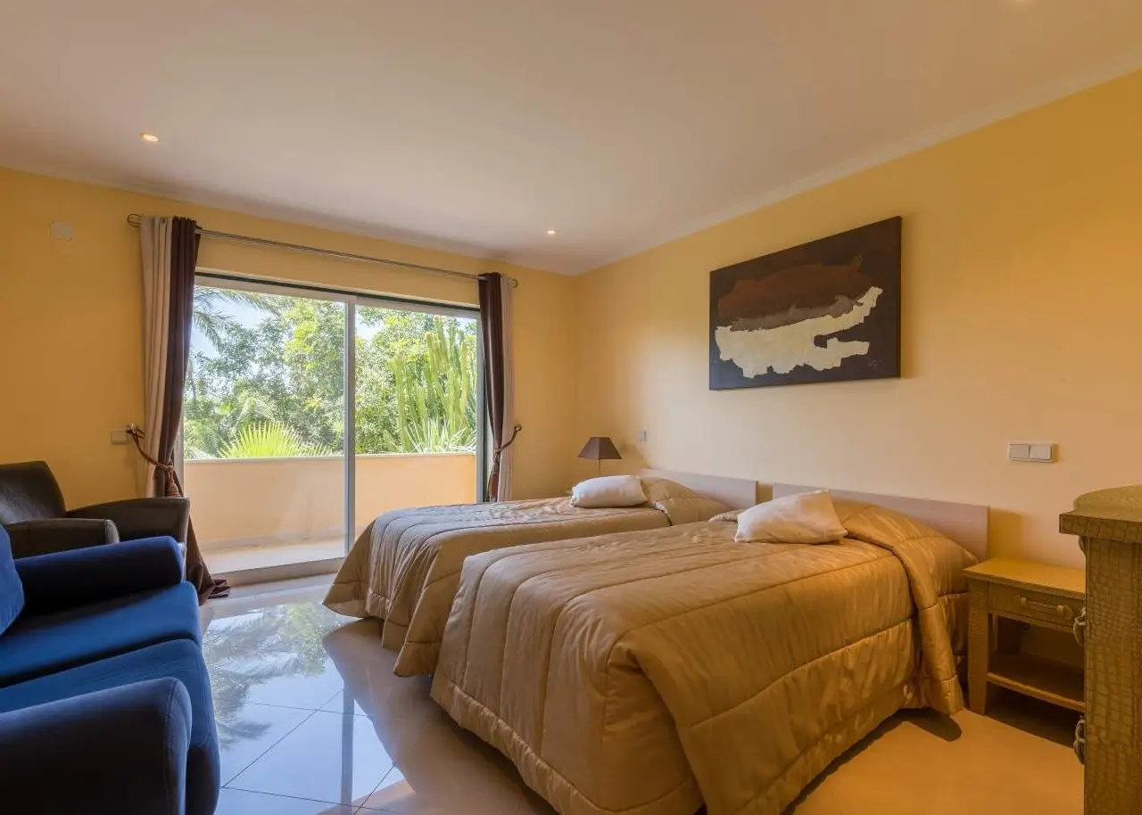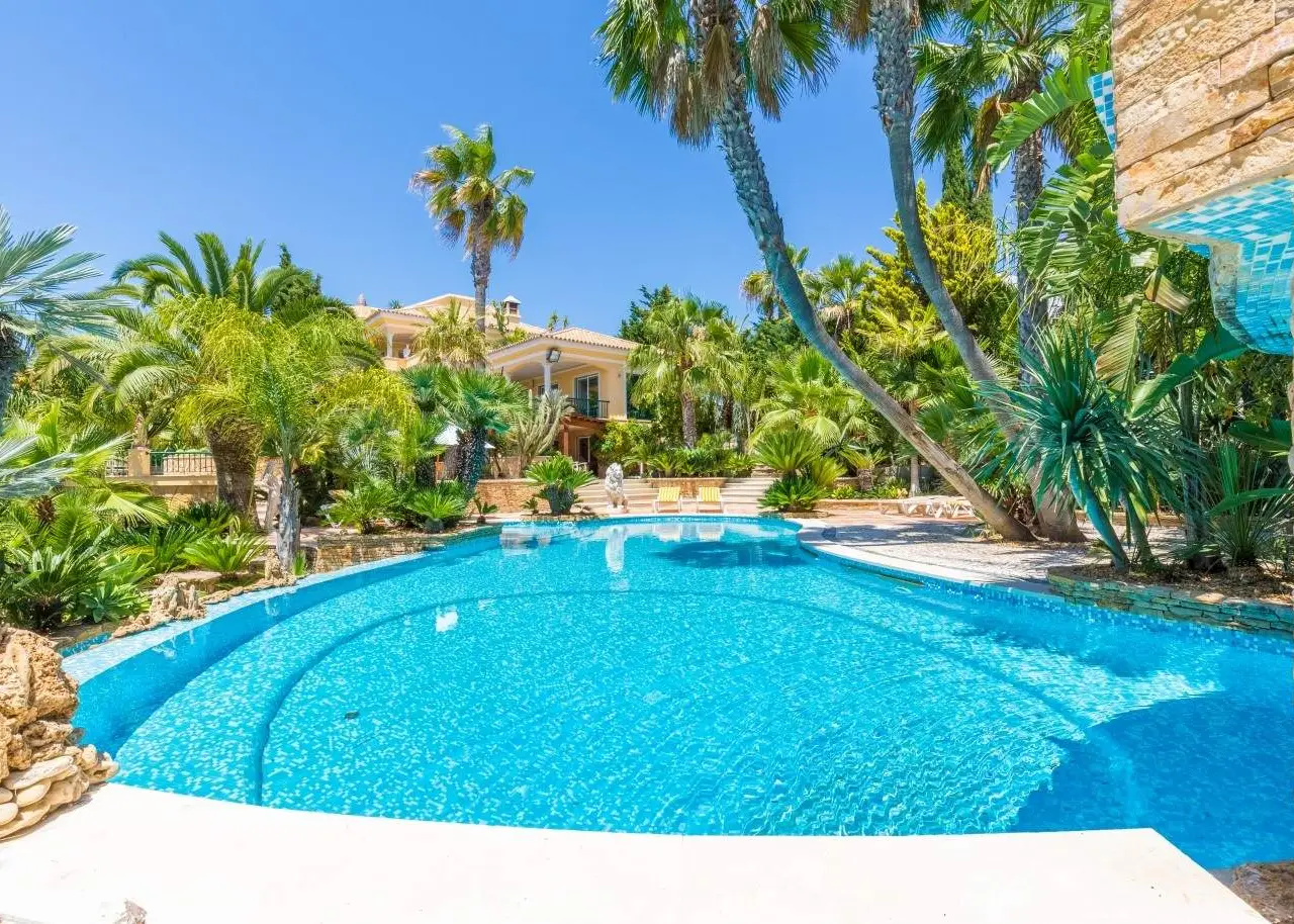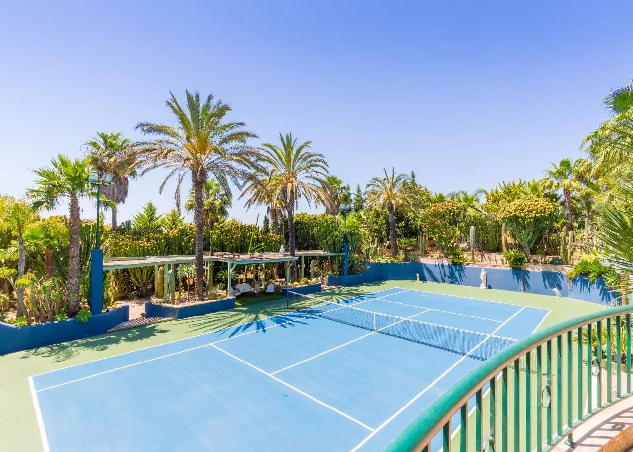 Stunning villa for sale with swimming pool, garden and a unique blue tennis court, in Albufeira, Algarve, Portugal. Surrounded by gardens, large palm trees, fruit trees, lakes and by a wonderful swimming pool, the property has several outdoor spaces for leisure, in a reserved environment. With a construction area of nearly 1500m2, the main feature of this home is glamour. It has several rooms with thematic decorations and large windows with views and direct communication to the exterior of the property. In the interior, the spacious rooms, the luxury finishes and the details that give it distinction also stand out. The large en suite rooms have a balcony. This magnificent property has characteristics that also allow its conversion to tourist purposes. With several golf courses nearby, it is located 10 minutes from the Marina of Albufeira and 30 minutes from Faro International Airport. CHARACTERISTICS: Plot Area: 4 500 m2 | 48 438 sq ft Area: 1 500 m2 | 16 146 sq ft Deployment Area: 1 500 m2 | 16 146 sq ft Building Area: 1 500 m2 | 16 146 sq ft Bedrooms: 7 Bathrooms: 8 Garage: 10 Energy efficiency: Certification in progress