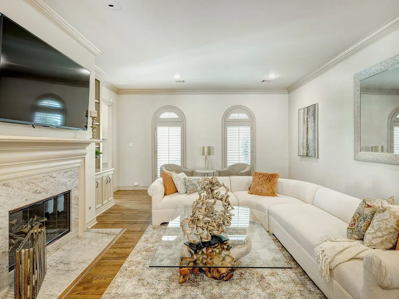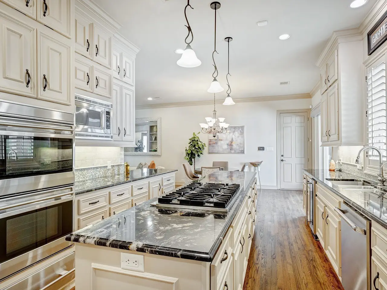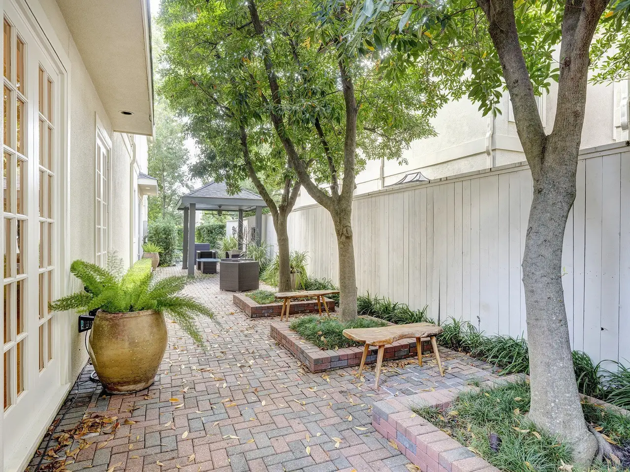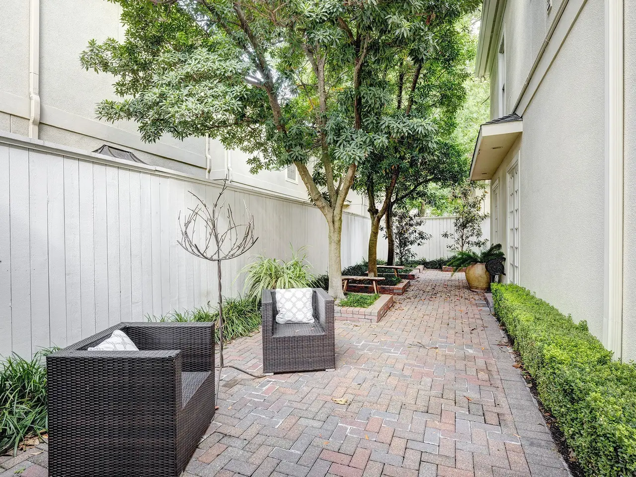 Only three homes in this lovely gated enclave—offering unmatched privacy, exceptional green space, and rare additional parking. Rich hardwood floors grace both the first and second levels. Features include an elevator, whole-house generator, mosquito misting system, and numerous tasteful updates. The kitchen boasts an expanded island, butler’s pantry, and walk-in pantry. The primary suite offers a fireplace, private sitting room with custom built-ins, two large closets, and a renovated spa-like shower. One secondary bedroom doubles as a sophisticated study with built-ins, private bath, and walk-in closet. Three bedrooms on the 2nd floor. The spacious 3rd-floor suite includes a full bath and closet. A charming pergola sits just beyond the kitchen, overlooking a curated yard—ideal for pets or a future cocktail pool. All info per Seller.