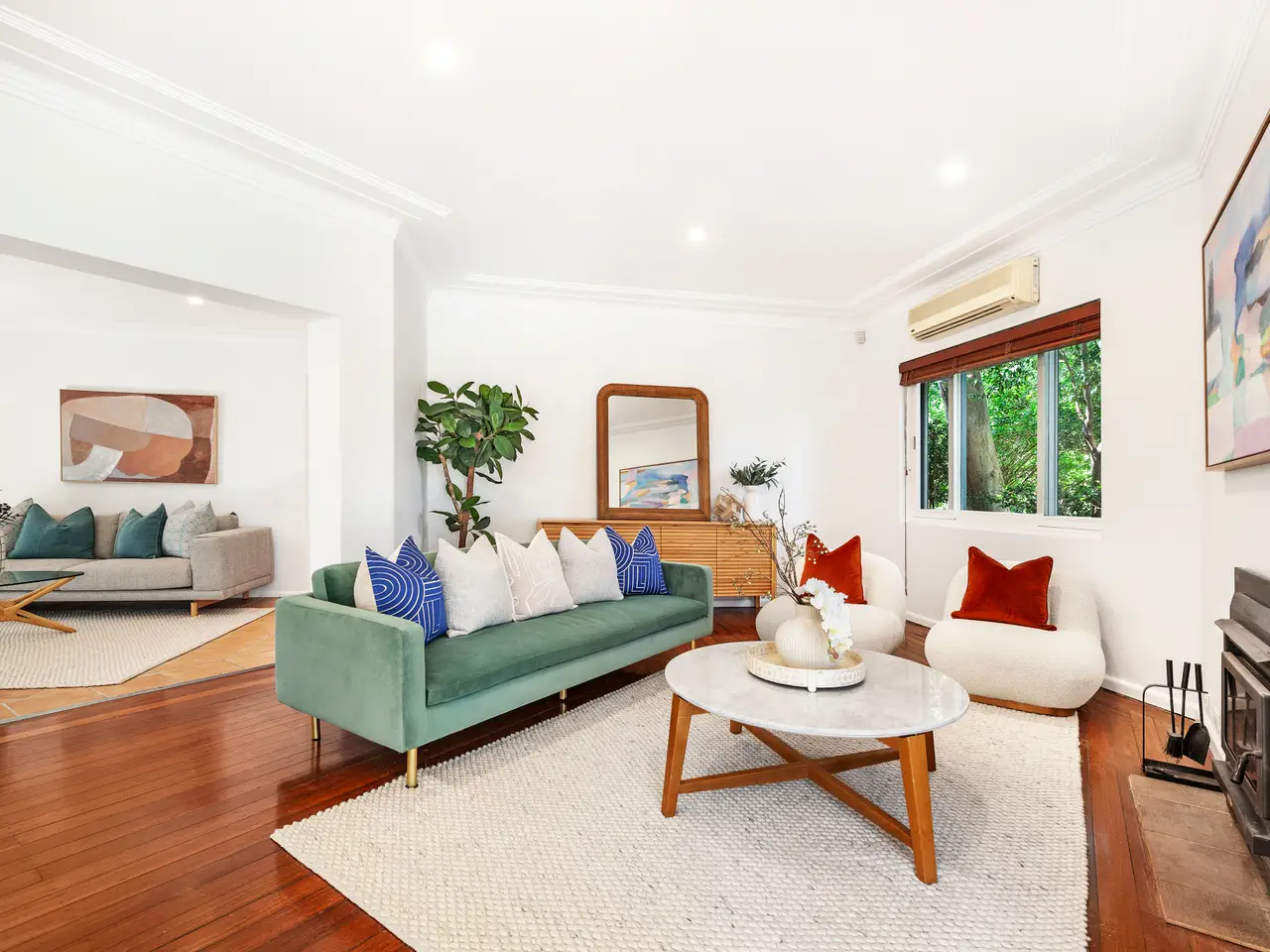 Positioned at the end of a picturesque cul-de-sac in a sought-after Riverview pocket, this comfortable, 879sqm approx. family home presents spacious family living that promises privacy and comfort. The modern layout offers multiple living and dining spaces, with flexibility for the whole family. The light-filled living and dining space boast vaulted ceilings and striking glass wall across the north-east facing rear of the house. Framed by a tropical backdrop and garden adjoining Warraroon Reserve, and buses a short stroll away, this family sanctuary feels effortlessly complete. - Sun-filled living and dining rooms including lounge with fireplace - Large gas kitchen with all stainless steel appliances and ample storage - Spacious bedrooms with built-in robes, one with direct bathroom access - Reverse cycle air in main living and lounge areas and floor heating in bedrooms - Swimming pool in tranquil surrounds, sunny front entertaining terrace - Lockup garage and separate workshop, plus a double covered carport - Serene position bordering Warraroon reserve, only a stroll to buses Auction commences 6.00pm at Belle Property Head Office 2A Phoenix Street, Lane Cove NSW 2066 Registrations from 5.30pm
