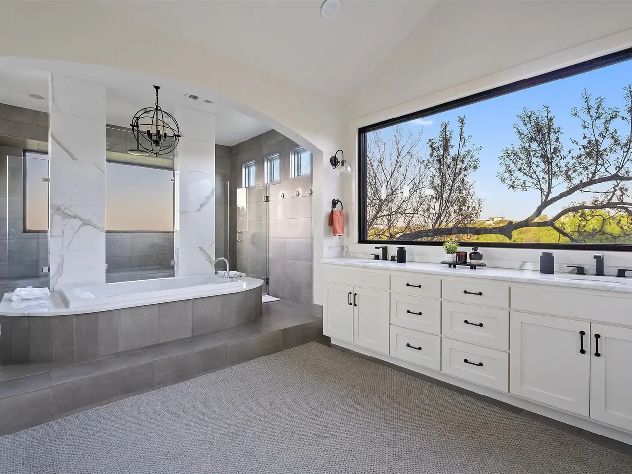 Stunning 6,000-square-foot residence set in Austin's prestigious Rob Roy community, a 24/7 guard-gated enclave in Westlake. This fully updated, move-in-ready, 6-bedroom home blends farmhouse charm with contemporary sophistication, offering a luxurious and casual living experience. Designed for the ultimate entertainer, the home features a spacious game room, a dedicated wine room, and media room. The backyard boasts one of Austin's most talked-about swimming pools, with an extraordinary grotto housing a hot tub and a massive 12-foot diving well. Ample yard space provides the perfect setting for outdoor play and relaxation. Additional highlights include a durable standing seam metal roof, a three-car garage, and a welcoming front porch - ideal for greeting guests or enjoying a peaceful morning read. Families will appreciate the home's location within the highly acclaimed Eanes Independent School District, feeding into Bridge Point Elementary, Hill Country Middle School, and Westlake High School. Eanes ISD is ranked in the top seven public school districts in the nation and number one in Texas. Westlake High School is named the 19th best public high school in the country and first in Texas. Experience luxury living in a home designed to impress. With beautiful north-facing views, it is situated in a community renowned for its educational excellence and friendly welcome.