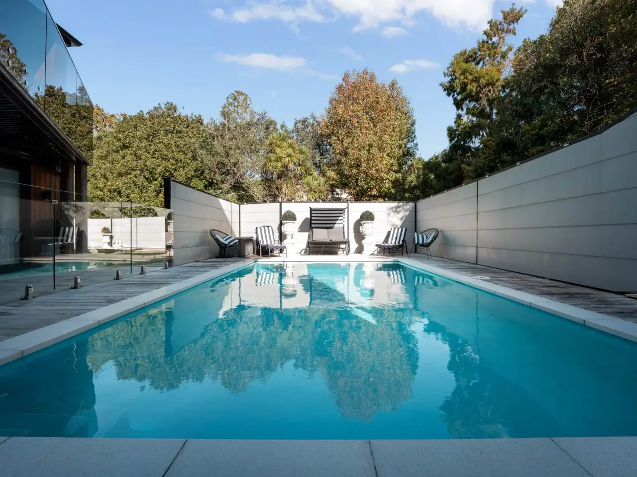 • Heated magnesium pool and spa with west-facing deck