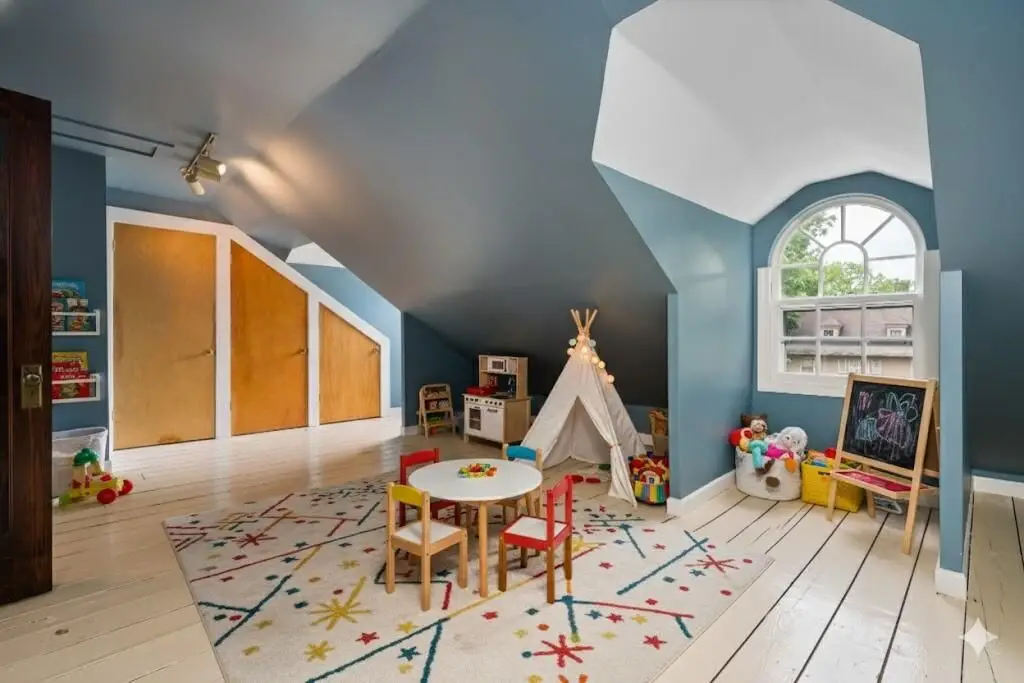 • Expansive rec room with fireplace