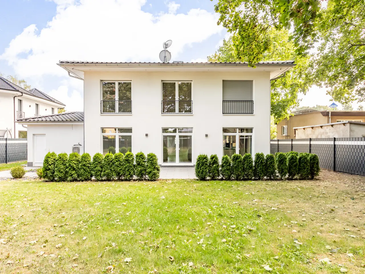 Stylish villa with fantastic views on a large green plot in the south of Berlin - a loving home is looking for a new owner. For sale is a massive urban villa with a living/usable area of approx. 290 m², which was built in 2017 to a very high standard in solid construction. The house is in a very well-kept condition and is ready for immediate use. The stylishly furnished property stands on a sunny plot of approx. 1,320 m² in Blankenfelde-Mahlow. There is also a massive double garage with a separate utility room on the green plot. The living space of approx. 260 m² offers a total of six rooms and three bathrooms, as well as a spacious sun terrace next to the house. The floors are covered with tiles and finished parquet. The first floor is divided into an open entrance area, guest bathroom, hallway, guest room/office and access to the garage with separate utility room. From the entrance area, a stylish double door leads into an open-plan living and dining area with a superlative open-plan kitchen with a total area of approx. 78 m². The 3.20 m high ceilings in conjunction with three large patio doors lend a very special charm. The large sun terrace by the house rounds off the first floor of the property. The upper floor is reached via the open-plan staircase. The open gallery divides this floor into bedroom one, bathroom with bathtub, bedroom two, bedroom three and finally the master bedroom with walk-in closet and en-suite bathroom. All bedrooms facing the garden have floor-to-ceiling windows with French balconies. The garden is green and low-maintenance and offers enough space for relaxing hours outdoors, while the small playground guarantees plenty of outdoor fun for the little ones. Due to the size of the plot, there is the possibility of dividing the property with an additional building and multi-generational use. The fence system separates the property from the neighboring properties and creates a quiet, private atmosphere. Further details, pictures and floor plans as well as a viewing appointment are available on request.