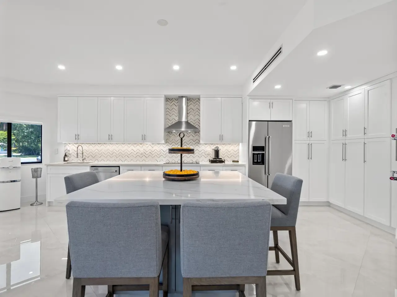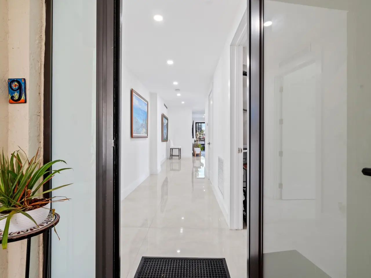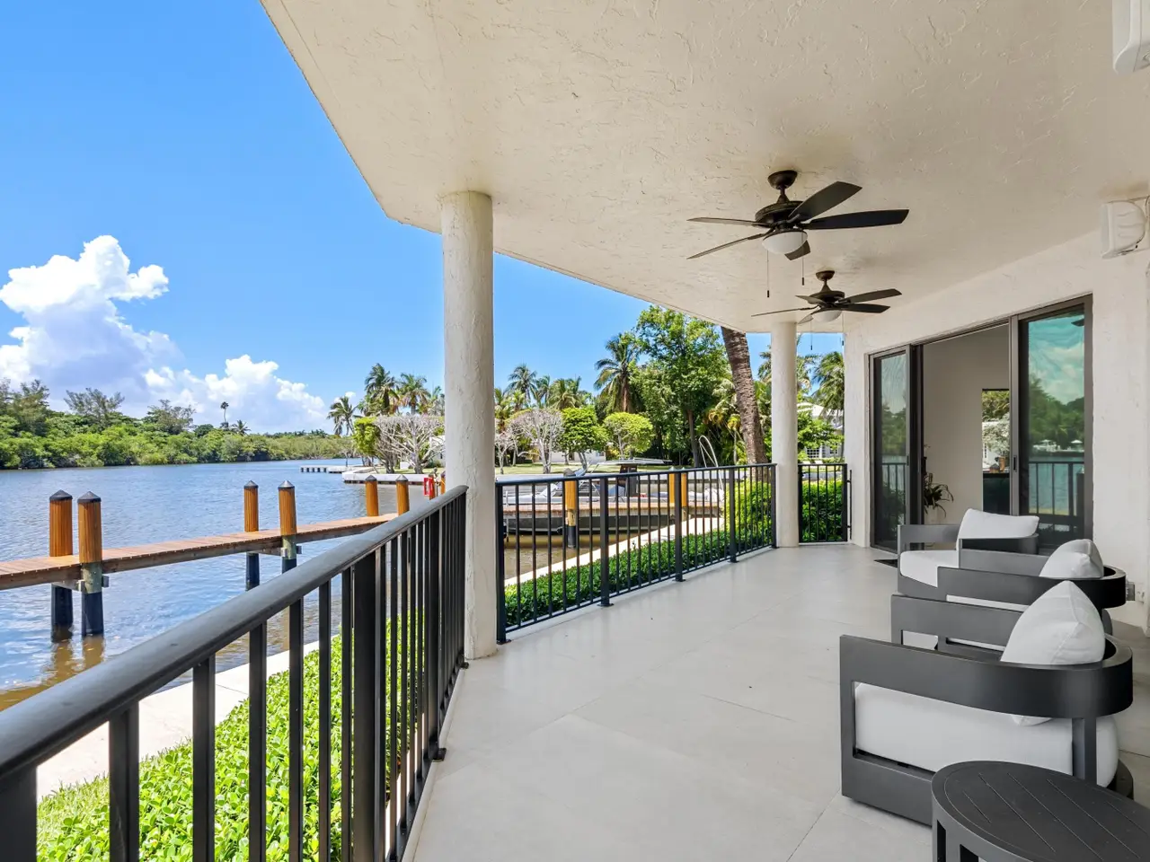 The crown jewel of Waterway North offering unmatched privacy and the most desirable vistas, this completely renovated first-floor residence is the only one uniquely situated on the complex's end point, it's own 38 foot dock. It directly fronts the Intracoastal Waterway with main rooms opening to the loggia offering easy access to the yard and waters edge with its own 38 foot dock private dock.