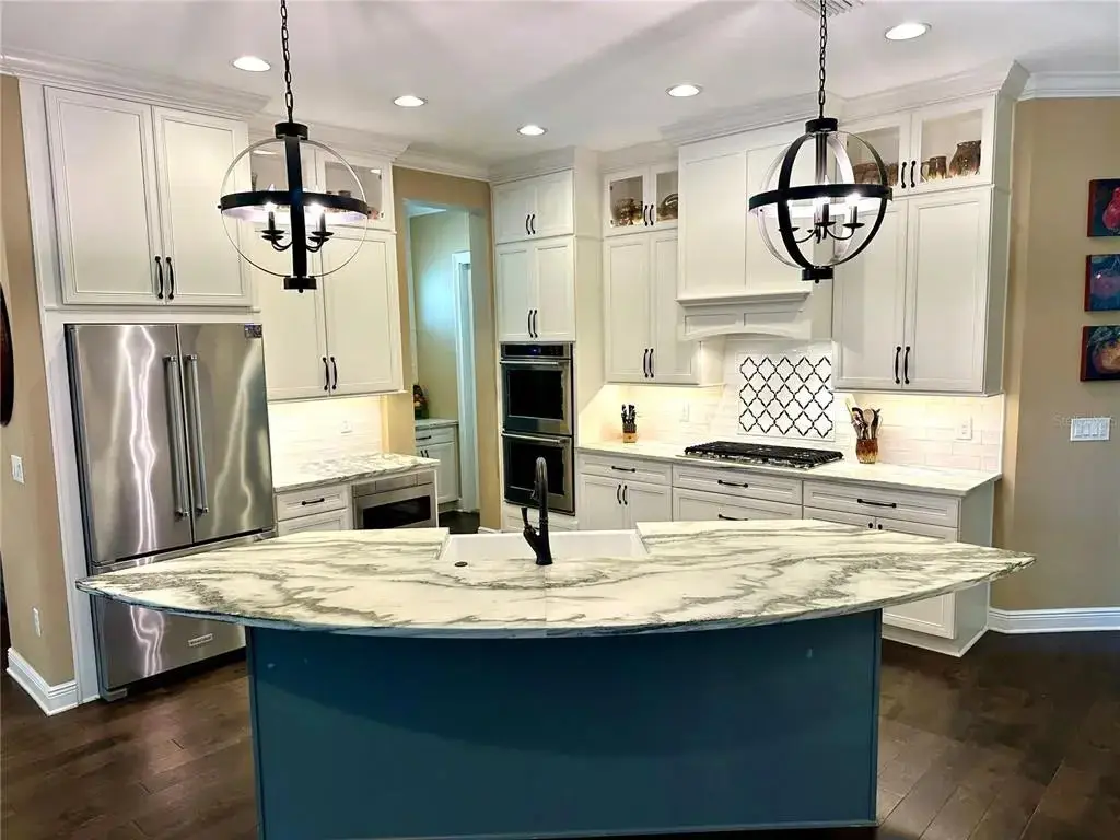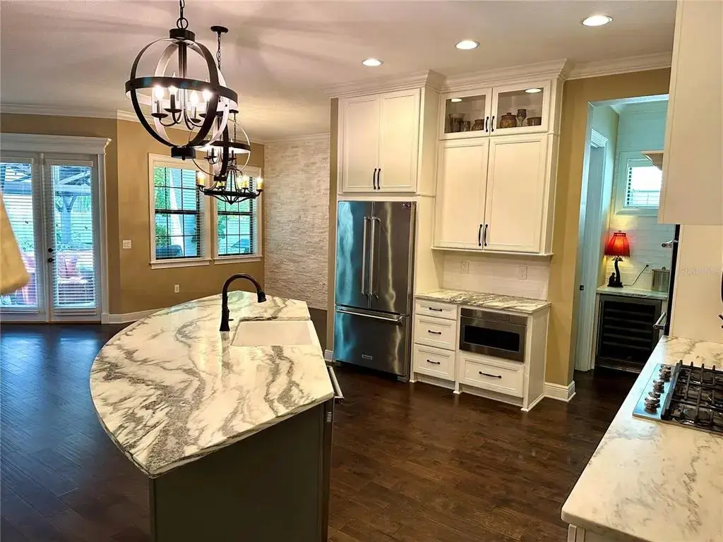 Luxurious 4BR/3.5 BA/2 Car Garage Executive Home with no expense spared! Make this Mediterranean marvel your dream home. This meticulously maintained masterpiece is the perfect home for the luxury buyer. The home features executive-level enhancements throughout, with a jaw-dropping abundance of prime features inside and outside. Equally ideal for everyday living and awesome options for entertaining. Striking floorplan layout provides an impressive open concept for living space. Tall ceilings and 8 ft doors throughout the entire home. The kitchen is a chef's dream with solid wood cabinets to the ceiling (uppers having glass front doors for an extra decorator touch), high end appliances, huge island, and beautiful marble countertops. The kitchen also has a separate prep area equipped with cabinets, wine fridge, and walk in pantry. Engineered hardwood floors cover the first floor with impressive light fixtures and a gas fireplace in the family room to take the chill off on a cool night. The great room is wired for surround sound, as well as speakers on the lanai. Hurricane impact windows and doors add additional safety in the event of a storm. This home was a safe haven fortress for this past season’s hurricanes with no flooding, giving you that piece of mind needed during our hurricane season. Upstairs features an impressive master bedroom and bath with a huge walk-in closet. Another bedroom with an ensuite bath, as well as two other bedrooms that share a Jack and Jill bath offer ample sleeping quarters. The bonus room can be configured to your liking, large enough for a pool table or just some comfortable sofas to make it a cozy movie room. A separate laundry room with washer/dryer, sink, and built in cabinets complete the upstairs. Outside in the back yard there is a large gazebo and TV for relaxing, as well as brick pavers and a low maintenance turf yard and beautiful landscaping. This is truly a gem that you do not want to miss!! Mak this your new home now!