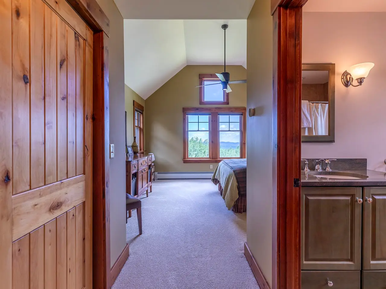 Refined Mountain Living Meets Timeless Craftsmanship. Conveniently located on coveted Old Weston Mt Road with huge long-distance views and an incredible, well-thought-out floor plan! A home where artisan details and design come together to create a warm, rustic luxury retreat. From the moment you step inside, you'll be captivated by the soaring vaulted ceilings, a grand stone fireplace and a striking birch staircase that serves as a true architectural focal point. The craftsman used local trees for pillars, rail supports, and balusters! Fine finishes throughout, including hand-hewn doors with hammered copper knobs, cypress floors, granite counters in all the baths. The spacious kitchen and dining area are ideal for entertaining, featuring knotty alder cabinetry, a generous center island, and sleek soapstone countertops. Every house should have a balance and flow, this house is incredible... Garage entry, mudroom, game room and outdoor living check the boxes. The bedrooms are spread out and well-appointed. The primary suite offers a spa-like bath experience with a dual shower with massaging jets. Additional baths are equally refined with granite finishes and custom detailing throughout. Another upper-level suite rounds out the top level, while the other bedrooms are found on the lower walk-out level. Every corner of this home is infused with character and high-end touches. Visit the Okemo real estate community today. Taxes are based on town assessment.