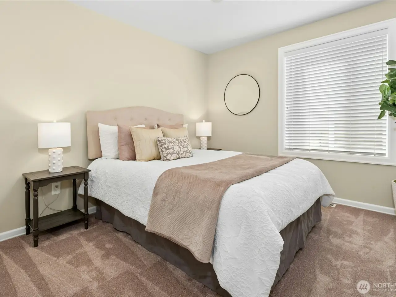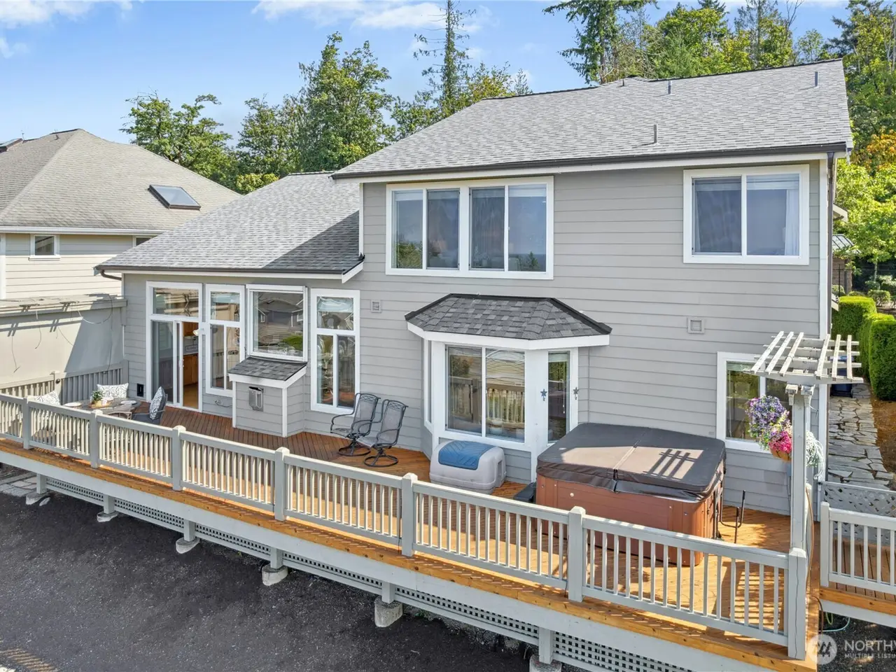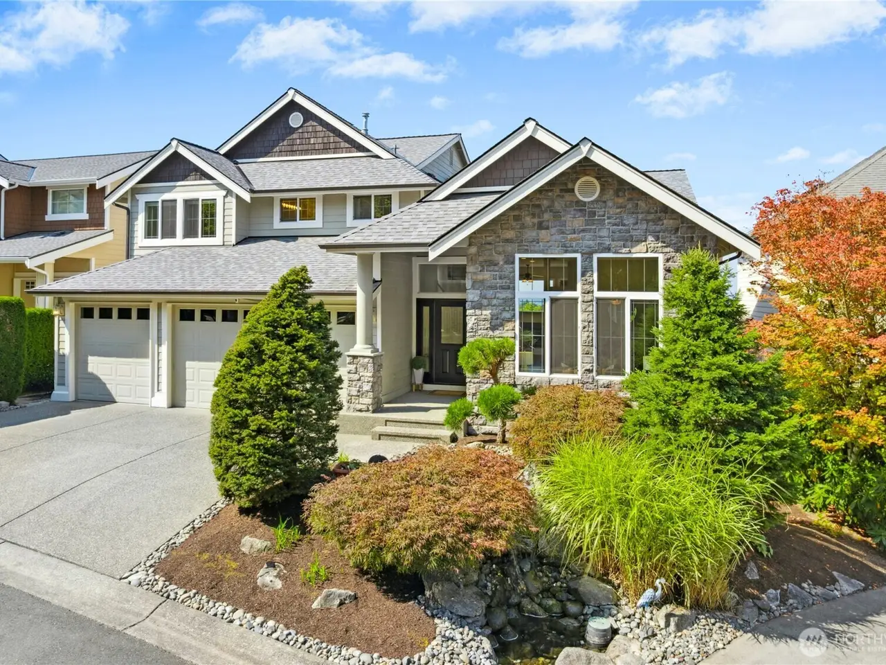 Privately nestled at the top of Woodside at McGarvey Park backing 400ac of forest framing 5 miles of trails. Vaulted, welcoming interiors & unmatched livability: MAIN FLOOR OWNER SUITE AND 2nd bedroom by ¾ bathroom & upstairs bonus room for games. Fun, social neighborhood w/summer & holiday events, 6 fantastic community parks just steps away, disc golf coming. Gorgeous kitchen w/warm cider cabinets, statement 50k BTU Italian range, new quartz, pantry. Great room opens to 600sf deck w/hot tub has unobstructed VIEWS of Seattle skyline, Olympics, sunsets & fireworks! Rich hues of stacked stone, hardwoods, travertine, quartzite, tall ceilings, classic millwork. 3-car garage, Tesla EVC, A/C, healthy furnace UV filtration. New roof/furnace/paint