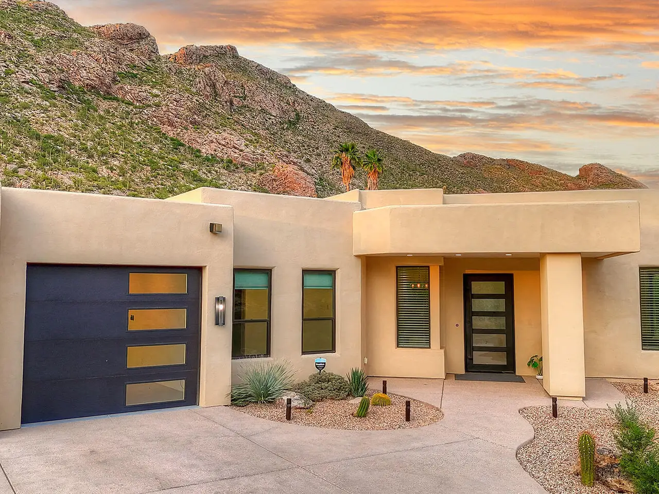 Stunning, like-new 2023 contemporary perched on La Paloma Drive, the highest street in the coveted Coronado Foothills Estates of Tucson's Catalina Foothills. Set on a glorious one-acre lot embraced by the Catalina Mountains and Coronado National Forest, this 3, 605 sq. ft. residence offers 4 bedrooms, 4.5 baths, and a 3-car garage--designed to showcase sweeping city lights, mountain vistas, and dramatic sunrise and sunset views from every room. Built by renowned master builder Paul Rondelli, the home welcomes you into a striking great room with soaring ceilings, walls of glass, porcelain tile flooring, a sleek fireplace, and an open dining area--perfect for entertaining. The chef's kitchen is both functional and modern, featuring stainless steel appliances, a spacious center island with a breakfast bar, abundant counter space, and a walk-in pantry. The luxurious primary suite is a private retreat with a fireplace, direct access to the covered patio, and a spa-inspired bathroom boasting quartz finishes, a walk-in glass shower, a soaking tub, and a generous walk-in closet with custom built-ins. Each bedroom has an en-suite bath and a walk-in closet. Additional highlights include a large laundry room with a sink, and a light-filled garage with windows and epoxy coated floors. Located within the Catalina Foothills School District #16, this home offers the perfect blend of contemporary style, move-in-ready convenience, and unrivaled views, all just minutes from shopping, dining, and city amenities, yet peacefully above the bustle of daily life.