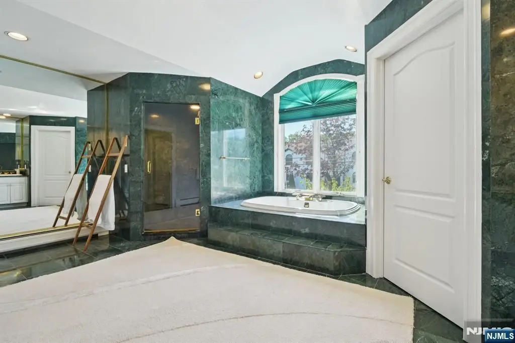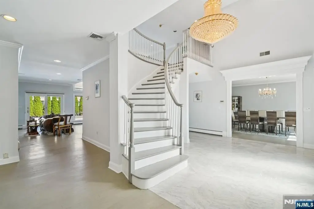 Impressive all-brick center hall colonial in the coveted North Cliffs, offering approx. 8,000 sq ft of beautifully finished living space. A grand two-story entry opens to a sun-filled great room with cathedral ceilings and fireplace, creating the perfect backdrop for gatherings. The elegant layout includes a formal dining room, private library with French doors, and a spacious living room. The gourmet kitchen is appointed with custom cabinetry, granite counters, center island, and an inviting breakfast area overlooking the pool and landscaped yard. Adjacent is a comfortable sitting area designed for everyday living. The home offers 5 spacious bedrooms and 6.5 baths, including a stunning primary suite with sitting area, fireplace, spa-like bath, walk-in closets, and a private balcony. Each additional bedroom features an en-suite bath and generous storage. A separate guest suite provides added privacy. The fully finished walk-out lower level includes new flooring, a large recreation area, full bath, and flexible space for entertaining or gym. Outdoors, enjoy manicured grounds with multiple patios and an in-ground pool, ideal for summer living. A rare opportunity in one of Englewood Cliffs most desirable neighborhoods.