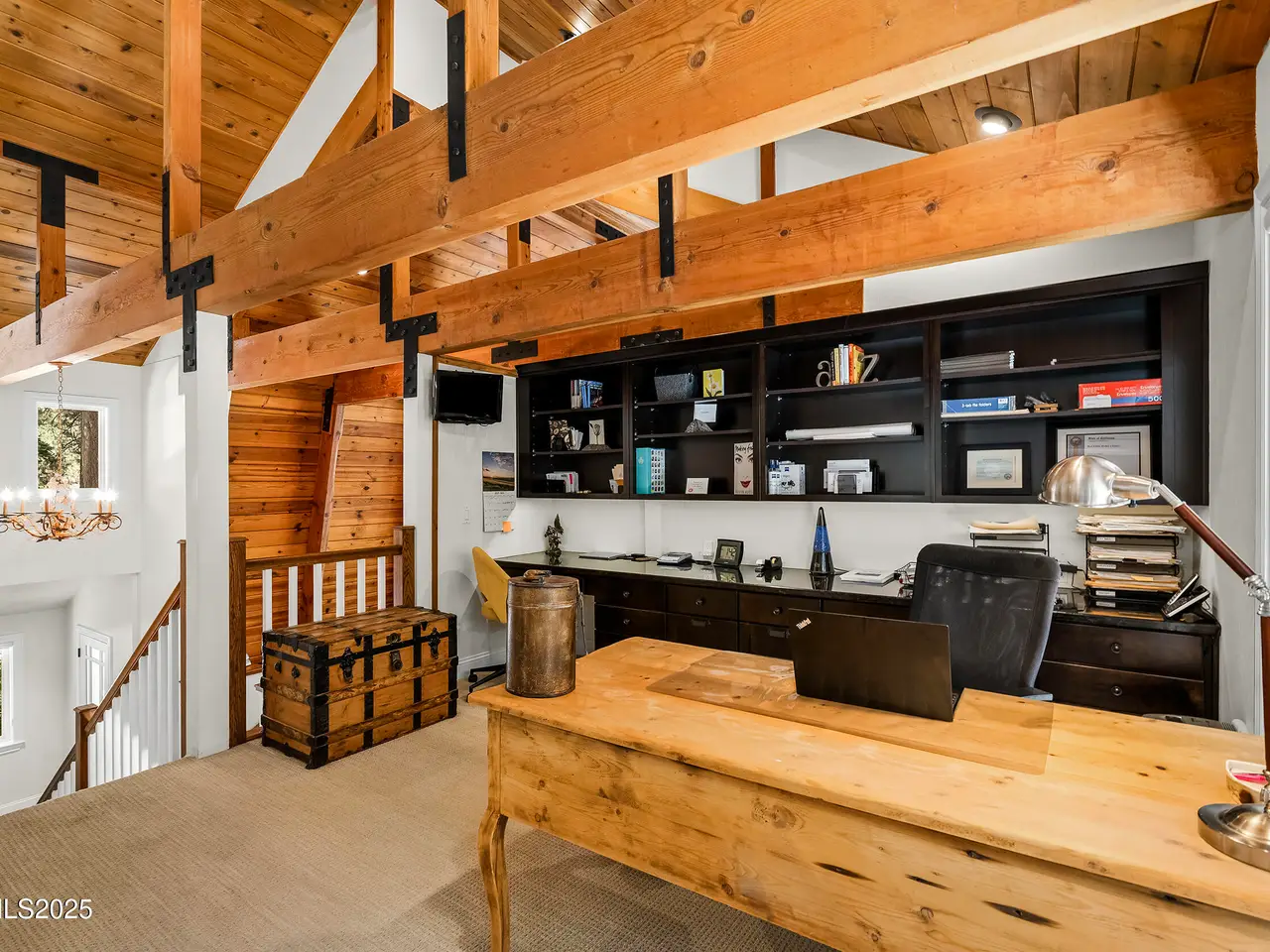 This stunning mountain home offers an ideal blend of luxury and comfort. Situated on a landscaped, level lot, featuring gourmet kitchen with granite counters. Welcoming living room with gas fireplace provides warmth and relaxation, a spacious recreation room opens to a patio with a firepit, ideal for outdoor gatherings year-round. The expansive backyard includes a large grass area, perfect for family activities and enjoying the serene mountain surroundings. High vaulted ceilings and marble floors in the primary bathroom add elegance. Features three full bathrooms, located on separate levels, along with an office offering deck access and a gym. Finished garage with epoxy-coated flooring and paver driveway adds functionality and beauty. Conveniently located near IVGID beaches and the Hyatt, with easy access to local amenities while offering a peaceful retreat in the heart of the mountains. The listing agent is related to the seller, and the seller is a NV broker.
