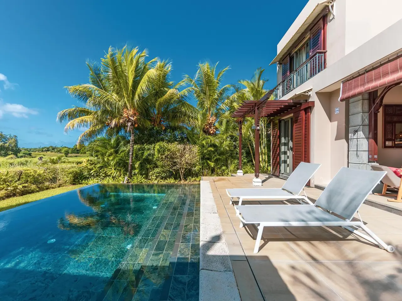 Welcome to a masterpiece of refined tropical living—this magnificent villa is tucked away in the heart of one of the island’s most exclusive domaines, surrounded by pristine greenery and a world-class, well-established golf course. From the moment you enter, a sense of calm sophistication embraces you, where natural stone floors, scenic wallpaper murals, and soaring ceilings with elegant wooden accents create a timeless atmosphere. Step onto a sun-drenched veranda that opens onto a shimmering slate pool, manicured gardens, and uninterrupted views of lush, tropical flora. Each suite within the villa is a haven of comfort and character, thoughtfully designed to blend indoor elegance with outdoor serenity. Tastefully furnished and immaculately maintained, this home is more than a residence—it’s a lifestyle. Enjoy privileged access to a private beach club, two renowned resort hotels, and an expansive natural reserve that invites exploration and tranquility. This is your opportunity to own a sanctuary where luxury meets nature—where every day feels like a holiday.