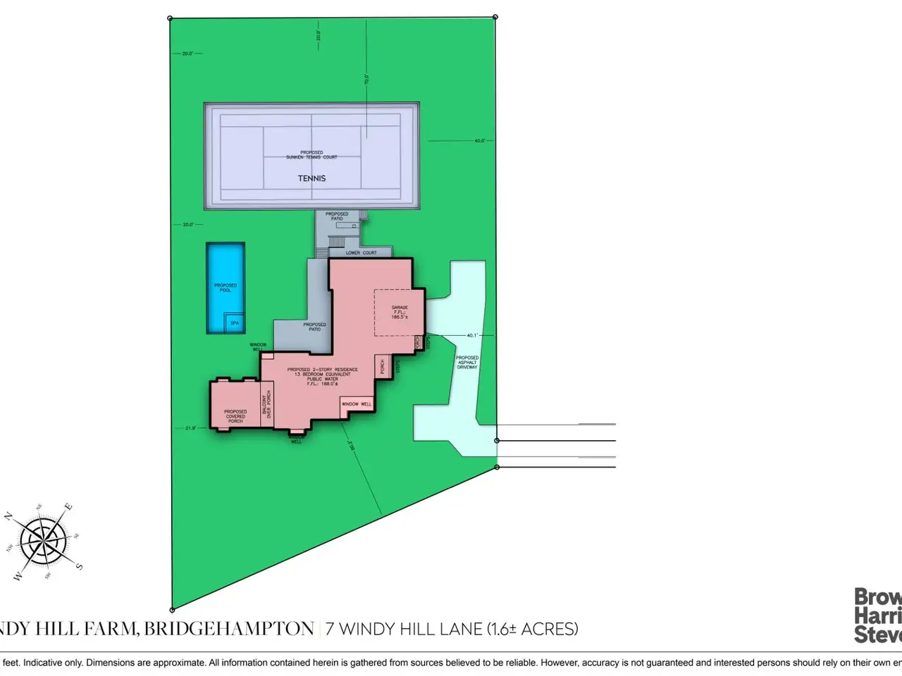 Exceptional, newly constructed and state of the art. A gorgeous new home in an equally stunning setting. Located within the private, 23+/- acre community of Windy Hill Farm in Bridgehampton the property is a sprawling 1.6+/- acre parcel, with pool and tennis, at the end of a cul-de-sac and overlooking open fields. The residence will be built to the highest standards of design and feature 9 bedrooms, 8 full bathrooms and one half bath across 6,875+/- sf of living space as well as a host of amenities including a rock climbing wall and sauna on the lower level, Tesla charging station, hydronic radiant floor heat in the garage and basement, a solar energy system and smart home tech. Finest materials and exquisite craftsmanship melding with architectural details including high ceilings, walls of glass, indoor and outdoor fireplaces, and a standing seam metal roof. The foyer opens into a perfectly designed floor plan. The east wing of the home features a living room, beautiful office, and 2 bedrooms suites. The west side offers a professional chef's kitchen, open to the family room, with large butler's pantry and breakfast area. An expansive covered porch, right off the kitchen and family room is stylish place to lounge in the glow of the outdoor fireplace. State of the art tech can be found throughout, adding to a sense of comfort and convenience. The entire home is prewired for Sonos. The bedrooms are elegant, nearly all with en suite baths. Both the primary and junior primary suites offer luxurious accommodation to relax and unwind. The walk-out lower level features a glassed gym area with access to the lower court and and Tennis beyond, sauna, game room wine closet, ample storage, and 2 bedrooms sharing a bath. Outside, the lush, well-manicured grounds will surround a gunite infinity swimming pool, tennis court, and offer pasture views. Option may be available during the pre-construction period to custom build a pool house or accessory structure for up to 3 horses with cost depending on the buyer's final choices of amenities. 13+ acres of the Windy Hill Farm community will be preserved as common open space for the exclusive use of the homeowners inclusive of a 100-year-old apple orchard and a planned horse pasture. A homeowner association will manage the usage of the space to insure it preserves the bucolic nature of the community. Located in Bridgehampton, NY, a hamlet long renowned for idyllic estates, historic horse farms and exceptional equestrian events.