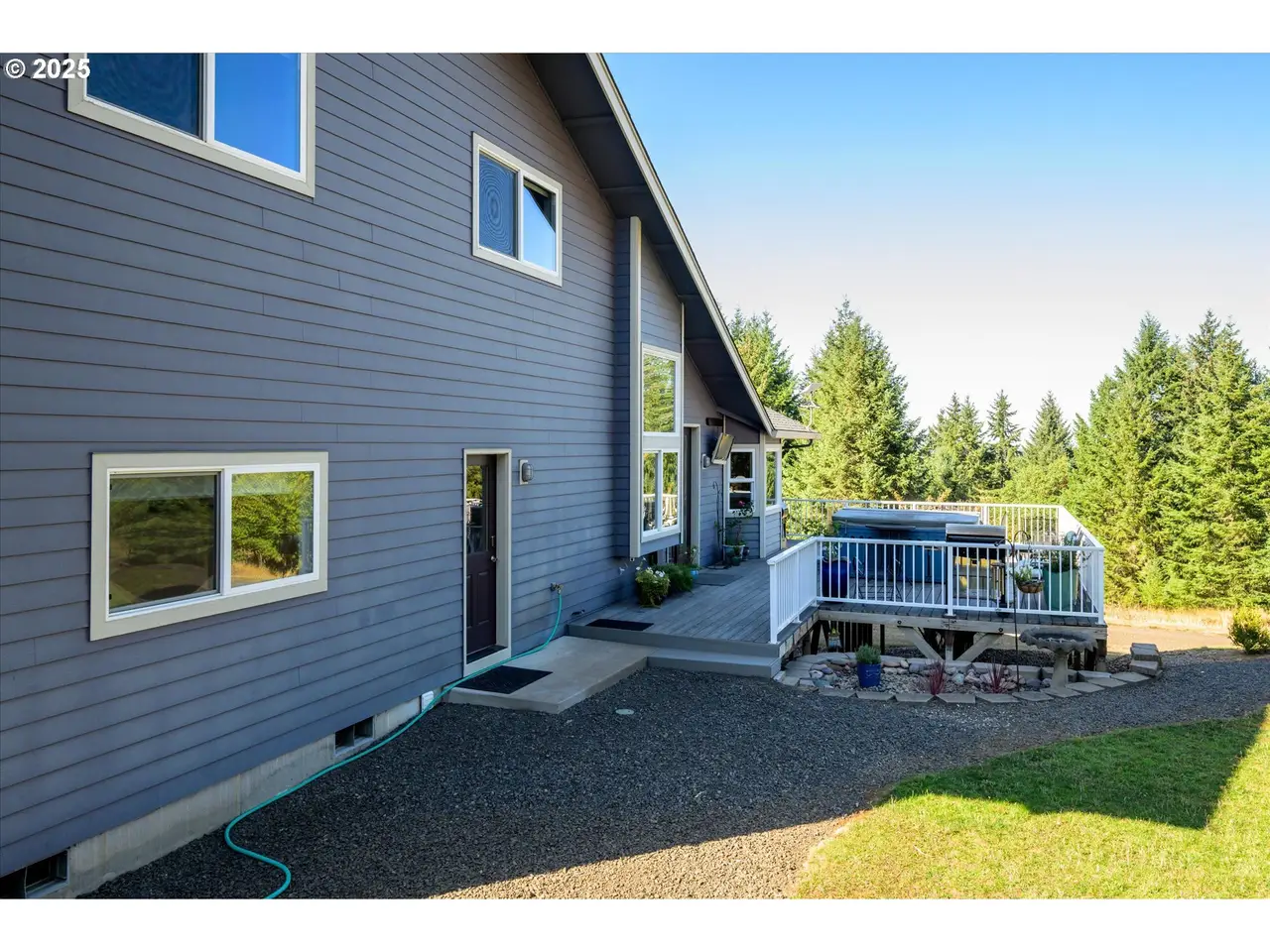 Welcome to 27067 Pickens Rd -- a private retreat tucked away on 10 serene wooded acres at the end of the road. This light-filled home offers 4 bedrooms plus a possible 5th, 3.5 bathrooms, and breathtaking views from nearly every window. The heart of the home is the amazing kitchen, featuring an inviting eating bar, Brazilian cherry cabinets, and an open concept kitchen-living room design perfect for entertaining or family gatherings. Finish the lower level 733 square feet as you like w/the potential space for studio/workshop, exercise area, office space, wine cellar, living space, cinema room, storage space. Concrete flooring, garage door header for daylight entrance & wired for Home Entertainment Hub. Step outside and enjoy the peaceful natural surroundings which include a large deck w/gas bbq hookup and hot tub, an upper deck w/area for a pool, fire pit, 36x48 barn/shop with 3 stalls--ideal for animals, hobbies, or extra storage, and ample parking. Also you will find an oversized garage w/2 water heaters, water system & tool storage. Next to the garage is a 50 amp RV hook-up and sewer. With its blend of privacy, functionality, and beauty, this property offers the best of country living close to Eugene and Veneta.