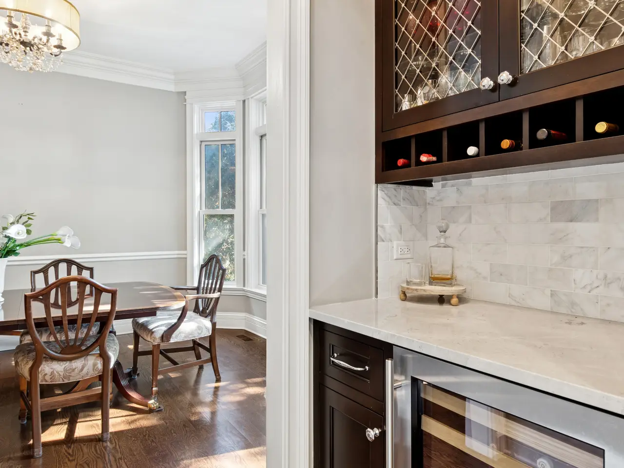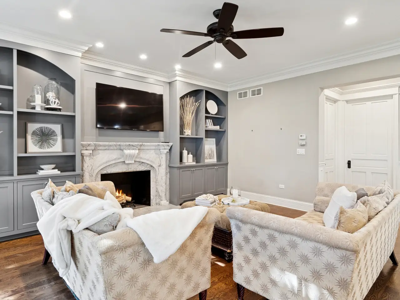 LIVE THE DOWNTOWN NAPERVILLE LIFESTYLE AT 203 S COLUMBIA STREET! Just steps from the heart of downtown, this ICONIC Victorian-style home combines timeless elegance with modern luxury, offering an extraordinary opportunity to live amid boutique shops, award-winning restaurants, and the scenic Riverwalk. BUILT IN 2015, THIS ALL 4-SIDES BRICK HOME SPANS 5,000 SQUARE FEET and showcases 10-foot ceilings on the main level, 9-foot ceilings in the basement, and rich walnut hardwood floors throughout. Step inside to discover hand-carved custom millwork and architectural details that tell a story of artistry & refined craftsmanship. The focal point is a carved marble fireplace by Atelier Jouvence, the same artisans behind the Chicago Art Institute's marble carvings, complemented by locally crafted stained-glass accents that bring vintage charm & character to every room. The 3 oversized imported doors on the main level, sourced from Venezuela, add distinction & architectural presence to the space."" THE CHEF'S KITCHEN IS AN ENTERTAINER'S DREAM, FEATURING ALL THERMADOR APPLIANCES, SLEEK MARBLE ""PIETRA GRAY"" COUNTERTOPS, AND A CUSTOM BANQUETTE BREAKFAST NOOK, PERFECT for family gatherings or hosting friends. Enjoy a morning coffee or evening glass of wine on the wraparound front porch, soaking in the energy of downtown living. The primary suite is a private retreat, offering a sitting area or home office, a walk-in closet, and an exquisite bathroom with an oversized jetted tub , separate shower, antiqued white woodwork on his-and-her sinks, and black-and-white tiled marbled accents-a perfect blend of elegance & style. With 5 additional spacious bedrooms, each featuring its own en-suite bath with marble countertops & walk-in closet, the home provides privacy & luxury for every family member. The basement, already equipped with a fireplace & rough-in plumbing, offers endless potential for a recreation area, home theater, or guest suite. Modern amenities include 3 furnaces, humidifiers, a/c units & an INSTANT WHOLE-HOUSE HOT WATER SYSTEM - there is no running out of hot water! The detached two-car garage features an upper-level loft, ideal for a workshop, studio, or hobby space, and there's also an extra parking pad for convenience. Experience the vibrant downtown lifestyle-stroll along the Riverwalk, enjoy favorite restaurants like Gia Mia, Santo Cielo, & Vasili's, or take in live music and seasonal festivals just steps from your front door. Minutes from North Central College, award-winning District 203 schools, and the Metra station, this home offers unparalleled convenience. A rare combination of artistry, comfort, and location-203 S Columbia Street invites you to live beautifully in the very heart of Naperville.