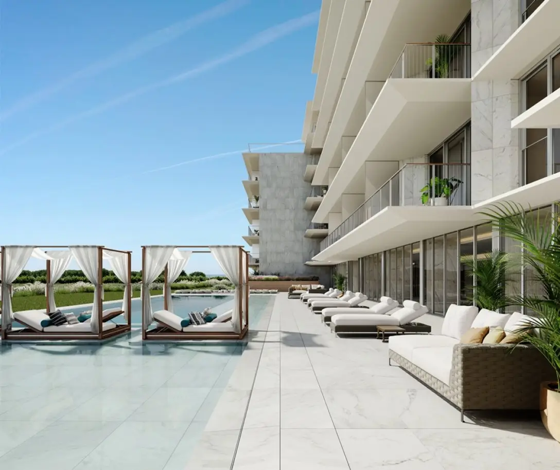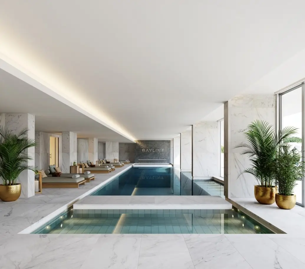 On the seafront, next to the beach and Lagoa dos Salgados, in Armação de Pera, in the Algarve, we find this modern two-bedroom apartment. The apartment is part of a new and exclusive development called Bayline. The apartment was designed to combine comfort and functionality with luxury, high quality construction and attention to detail. This fantastic apartment consists of two large suites. The master suite has a living room, adjacent to the sleeping area, which leads to the dressing room and large bathroom, and the other suite has a large built-in closet. The fully equipped kitchen is compact and functional, directly connected to the laundry room and the open-plan living area, with access to the fantastic terrace, which runs along part of the apartment, has space for relaxation, leisure and socializing, always framed by the beautiful view of the garden, the bay and the beach. The development offers residents exclusive use of a large outdoor swimming pool, a spa with a heated indoor pool, sauna, Turkish bath and gym. Residents can also take advantage of the concierge service and private parking with a charging station for electric vehicles, as well as 2 hectares of lush garden. CHARACTERISTICS:Area: 288 m2 | 3 105 sq ft Useful area: 81 m2 | 874 sq ft Bedrooms: 2 Bathrooms: 3 Garage: 2 Energy efficiency: B FEATURES: 2 bedrooms Equipped kitchen Terrace Outdoor swimming pool Heated indoor pool Garden Private parking