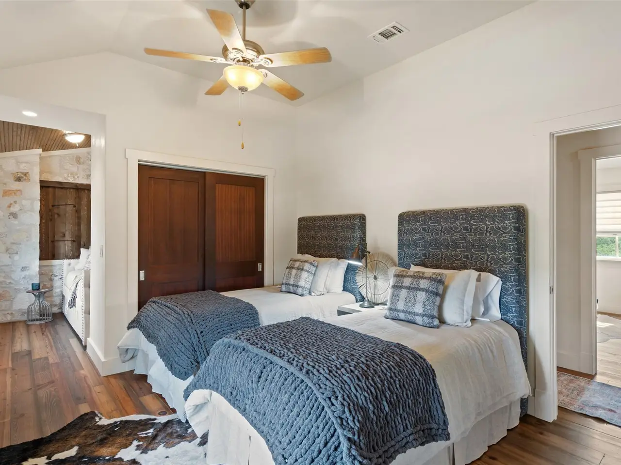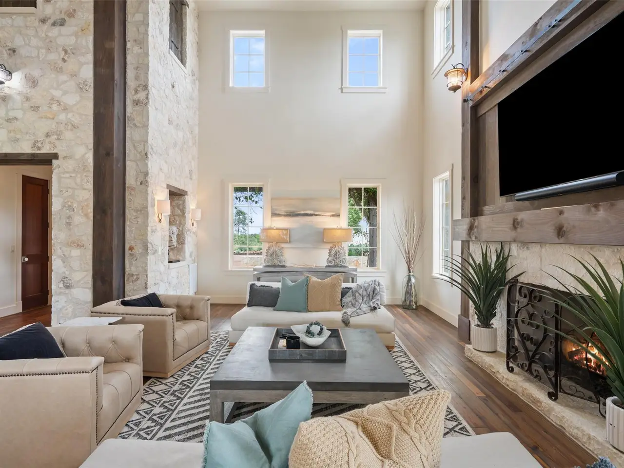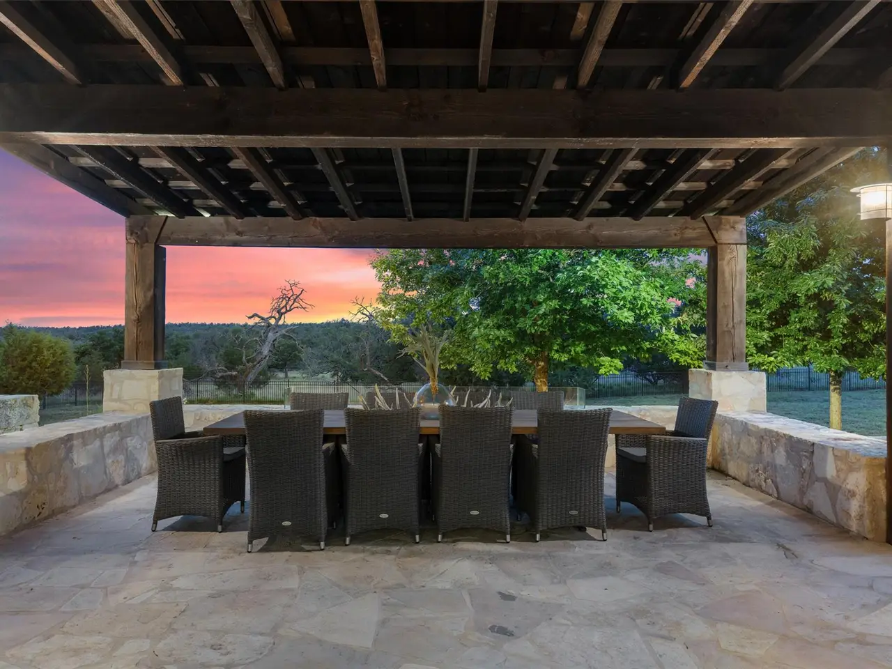 OPEN HOUSE ATTENDEES MUST REGISTER WITH AGENT! Discover the perfect blend of rustic charm and refined living in this expansive custom-built 6-bedroom, 6.5-bath, 5,637-square foot ranch-style retreat--featuring 3 private casitas, ideal for multigenerational living or hosting guests in style. Nestled in the heart of the Hill Country on 2.54 acres, this serene property offers comfort, flair, and Texas hospitality. Inside, you'll find a beautifully crafted interior that brings the outdoors in, with rich wood beams, interior limestone walls, custom cabinetry, and hand-selected moldings throughout. The great room impresses with soaring ceilings, abundant natural light from large windows, and one of the home's five wood-burning fireplaces. The kitchen is a chef's dream, featuring granite countertops, a 6-burner stove, and a wet bar perfect for entertaining. Bar top seating along with a formal dining area, a walk in pantry and generously sized laundry room complete the space. The property's two spacious indoor living areas offer plenty of room to relax or host, while plantation shutters and hardwood floors from a distillery add timeless charm and privacy. The owner's retreat is a true sanctuary, featuring its own fireplace and thoughtful upgrades throughout. Whether you're looking for a private getaway, or a place to host family and friends, this home offers it all--luxury, warmth, and tranquility. Step outside to expansive outdoor living spaces, where multiple patios invite dining, lounging, and entertaining under the Texas sky. Enjoy peaceful views from the covered patio or gather around one of the fireplaces for a cozy evening under the stars. Boot Ranch is a private, gated community spanning 2,080 acres, featuring a top-tier golf club, three heated pools, a pavilion with a bar and grill, tennis courts, pickleball, basketball, a fitness center, Longhorn Lake, a shooting range, bike trails, and a market center--all just 4 miles from the nearest grocery store.