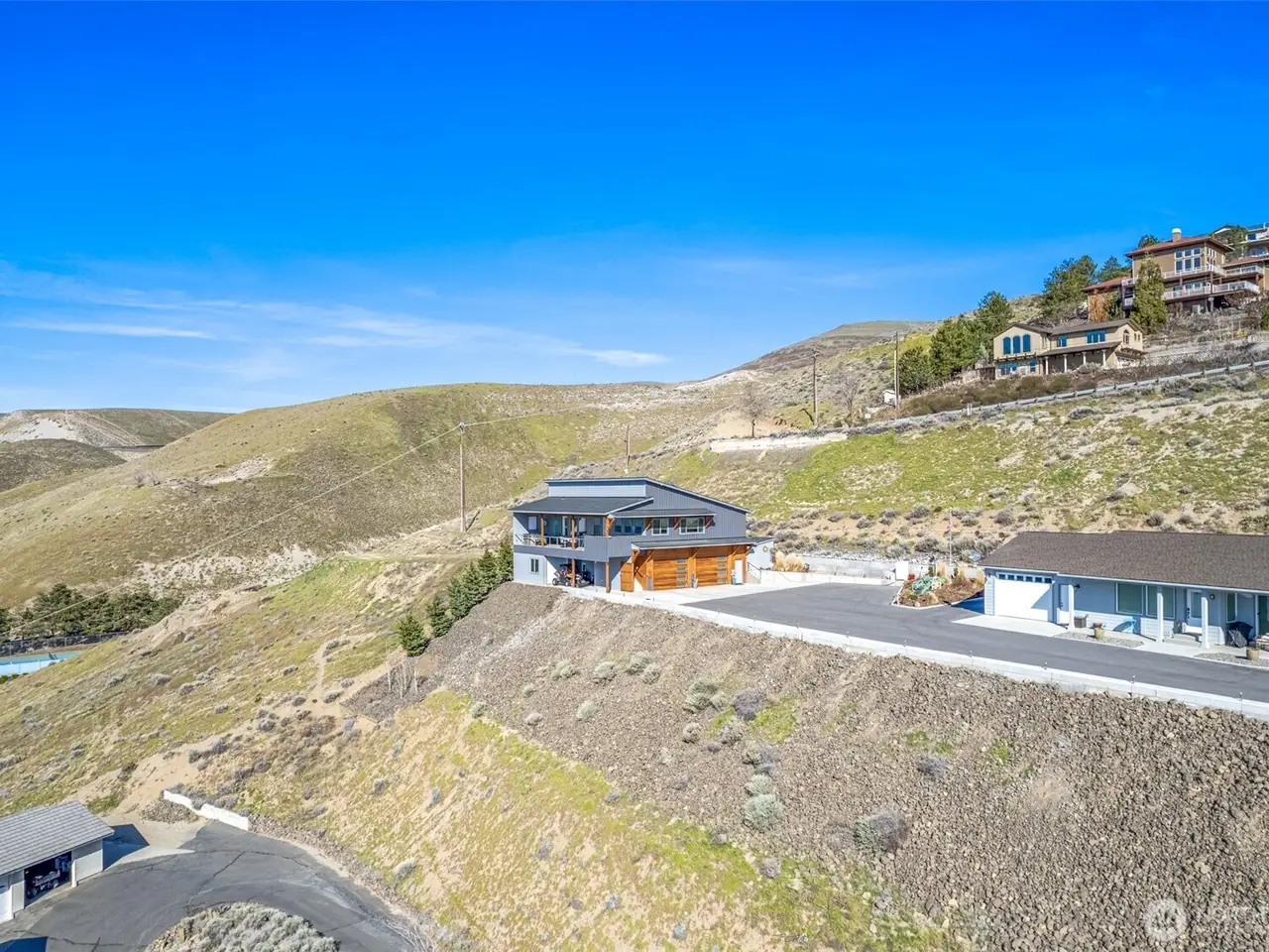 Whether you seek a permanent residence or seasonal retreat, this stunning home offers lifestyle of luxury, serenity & breathtaking views of the river in all directions, west bar, the Colockum & Gorge Amphitheatre. Relax on patio with full kitchen, to enjoy watching elk & other wildlife across river. This home features an open floor plan with large gourmet kitchen is perfect for entertaining. Primary bed & full bath, both maximizing views. Large master walk thru closet. Drive into you 915 sq ft garage with its own heating/air & 2 12 ft wide garage doors for easy access. 2 bedrooms & 3/4 bath are also located on this floor (one bedroom non-conforming). Home even has an elevator. Generator recently installed for just in case power goes out.