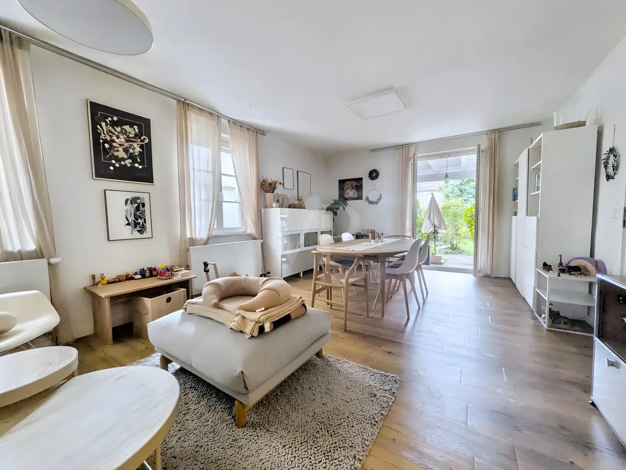 This well-kept townhouse, in the heart of Fellbach, impresses with its central city location on a very beautiful, secluded garden plot. It is very rare to find this combination of good accessibility and a haven of peace in a well-kept garden with plenty of privacy. The house consists of three apartments: - First floor: 3.5 rooms, 97.59 m² living space with terrace (rented). - Second floor: 4.5 rooms, 109.45 m² living space with large balcony and garden access. - Top floor: 2.5 rooms, 52.52 m² living space. The basement has a usable area of 88.34 m². In addition, there is a further usable area of 9.66 m² on the top floor. Both apartments on the upper floor and attic are currently used by the owner's family. The top floor functions as a separate guest area. The layout of the apartments is based on the typical floor plan of the turn of the century with large bedrooms, separate WC and spacious kitchen area with adjoining pantry, which was later converted into a bathroom. The purchase price includes an underground parking space in the neighboring building. This property is ideal for investors or owner-occupiers who want to live in a central and spacious location. Part-letting is also an option. A multi-generation house is also conceivable. The two apartments on the upper floor and top floor are available for immediate occupation upon sale. The entire house can also be easily occupied by a family. The garden with its large lawn, mature trees, swings and climbing tower is an absolute paradise for children. The house is very well-kept and has been constantly maintained. We would be happy to show you around the property and present this attractive townhouse to you.
