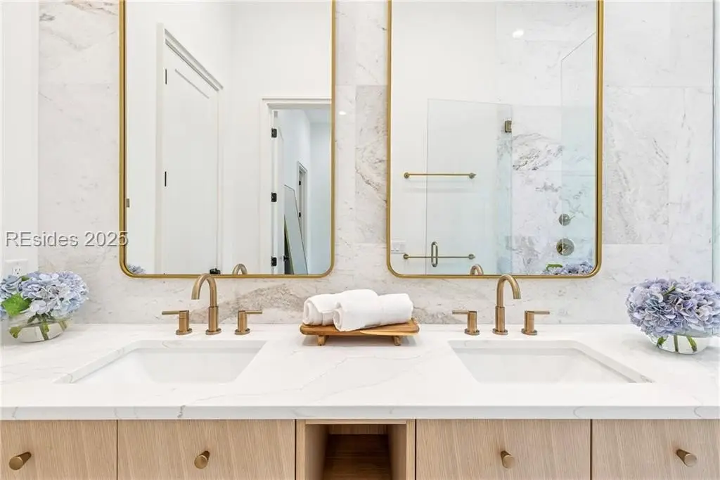 Exceptional Lowcountry living in this NEW CONSTRUCTION courtyard home, thoughtfully crafted with luxury finishes and refined details. The main level features an open kitchen, family and dining area, a serene primary suite, office, laundry, powder room and a covered porch with a fireplace. Upstairs , 4 bedrooms—2 ensuites and 2 sharing a bath—plus a versatile bonus room ideal for a theater, gym or playroom. Bathrooms feature floor-to-ceiling tilework. An oversized 2-car garage with a golf cart bay and extra-high ceilings offers space for a lift or extra storage. Elegant, modern living in one of Hilton Head’s most prestigious gated communities.