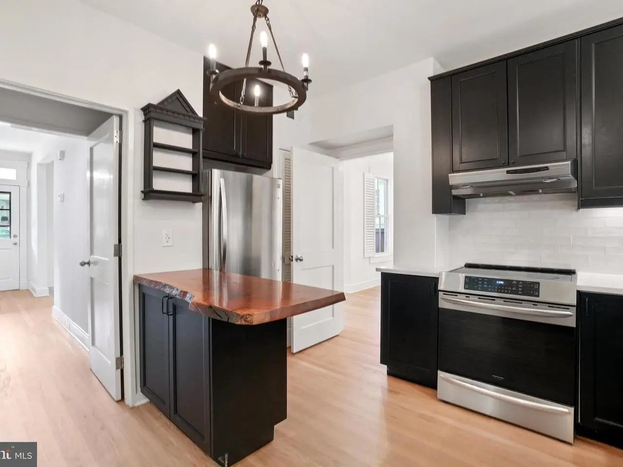Renovated chef's kitchen with black cabinetry