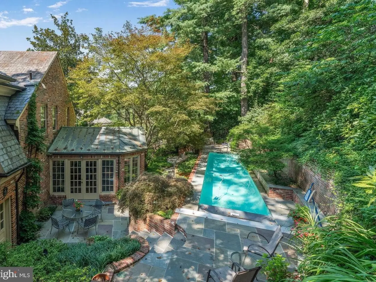 GREAT NEW PRICE ADJUSTMENT!! Fabulous opportunity to update and personalize this stately hillside home on a quiet drive in coveted Bannockburn Estates - an ideal property for entertaining on both a grand and intimate scale. The first level features a wide center-hall foyer, an elegant, embassy-sized living room, formal dining room, table-space kitchen, main-floor laundry, a large paneled family room with wet bar and powder room, plus a glass-enclosed sunroom with access to a flagstone patio, multi-level pool area and a wooded path with two more patios above. The second floor boasts four spacious bedrooms and three baths, including an expansive sitting area/office off the primary bedroom with built-ins and storage galore. The walk-out lower level offers a large paneled rec room, full bath and bonus room. With more than 6600 sf of living space, three fireplaces, slate & copper roofing, lush grounds, a double garage, extensive hardscaping, exterior lighting, an in-ground sprinkler system and more, all on a 20,000+ sf lot, this property is truly an oasis to call home.