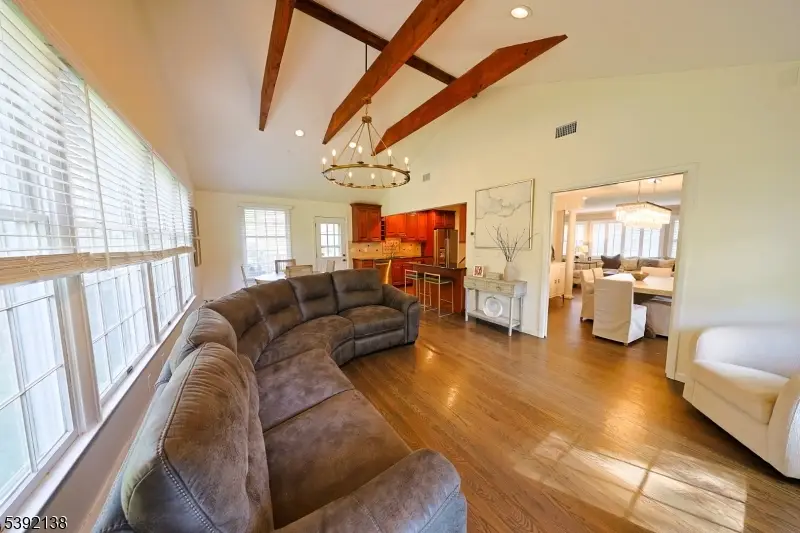 Welcome to this stunning residence boasting 4 spacious bedrooms and 2.1 beautifully appointed baths. Set on a flat park like lot in one of Florham Park's most sought after neighborhoods nestled on a quiet tree lined street. Enjoy a bright open floor plan ideal for modern living. This home greets you with an elegant foyer, with designer marble flooring leading into a sundrenched living room with fireplace and formal dining room with hardwood floors throughout. The updated kitchen offers custom cabinetry, stone countertops, new stainless steel appliances, and is open to the family room with a soaring cathedral ceiling, and a sunlit wall of windows, overlooking impressive yard. Direct access from family room to your own tranquil retreat with an expansive deck and a tree lined yard with no rear neighbors. The ultimate in privacy, relaxation and entertaining. The primary bedroom suite features a grand custom outfitted closet and a beautiful designer bath with double vanity and spa shower. Three more generous bedrooms on the same level, sharing a large full bath with double vanity and shower over tub. Two car attached garage walks into a large outfitted mudroom with custom built-in's, laundry room, and beautiful marble flooring. Spacious unfinished, lower level, which is perfect for recreation, exercise room, media room, or office. In close proximity to highly rated schools, as well as golf course, shopping, town, restaurants, and all major roads.