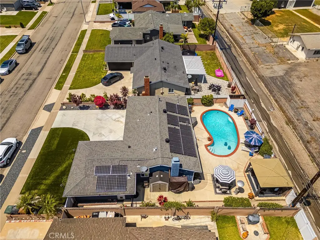 BEAUTIFULLY RENOVATED HOME with all the upgrades in the highly desirable Garden Park community. This turnkey 3-bedroom, 2-bath offers a perfect blend of comfort, style, and functionality starting with its inviting curb appeal that includes new artificial turf, established stone-mulch planting beds, a new main line, and a new driveway. The home is move-in ready with continuous vinyl flooring throughout, dual-pane vinyl windows and sliders, and a stunning kitchen with sleek quartz countertops, custom cabinetry, a large center island with plenty of storage, and premium stainless-steel appliances including a 6-burner WOLF range and an ultra-quiet Bosch dishwasher. There's also a whole-house water filtration system! An open floor plan living room/kitchen, you'll find a guest bathroom along with three well-proportioned bedrooms featuring ample closets and plenty of built-in storage. One guest bedroom even has a custom-made queen-sized Murphy bed that doubles as a desk. The master features an ensuite with a large shower and a custom floating vanity. All the home's blinds are also custom-made blackout shades for when you need them. New Pex re-pipe, new A/C and heat pump, rewire, and upgraded electrical panel (including a subpanel in the garage) ensures peace of mind. The home is also a smart home-the lights, fans, locks, thermostat, and garage door opener can be controlled by your voice or by touch. The home has new PAID-OFF solar and 2 Tesla Powerwalls, and an EV charger in the garage. The insulated attached 2-car garage with a tankless water heater is finished with the same continuous flooring as the rest of the house, has plenty of custom cabinets, and can double as a bonus room. Last but not least, the home's large backyard (featuring a gorgeous pool, a 60-jet jacuzzi, and a cedar gazebo) is a standout feature of this house. Hose off after your dip in the pool with your very own outdoor shower. You'll also enjoy fresh fruit from your very own mature Navel orange and white nectarine trees. Whether you're a first-time buyer or looking for a long-term family home, this property offers a fantastic location in the top rated GGUSD - Barker Elementary, Bell Intermediate, and Pacifica High School. Plus, it's down the street from beautiful Eastgate Park that hosts concerts, chili-cookoffs, and car shows. You'll be close to shopping centers and there's nearby access to the 405 & 22 freeways. Schedule a visit and fall in love with your future home!