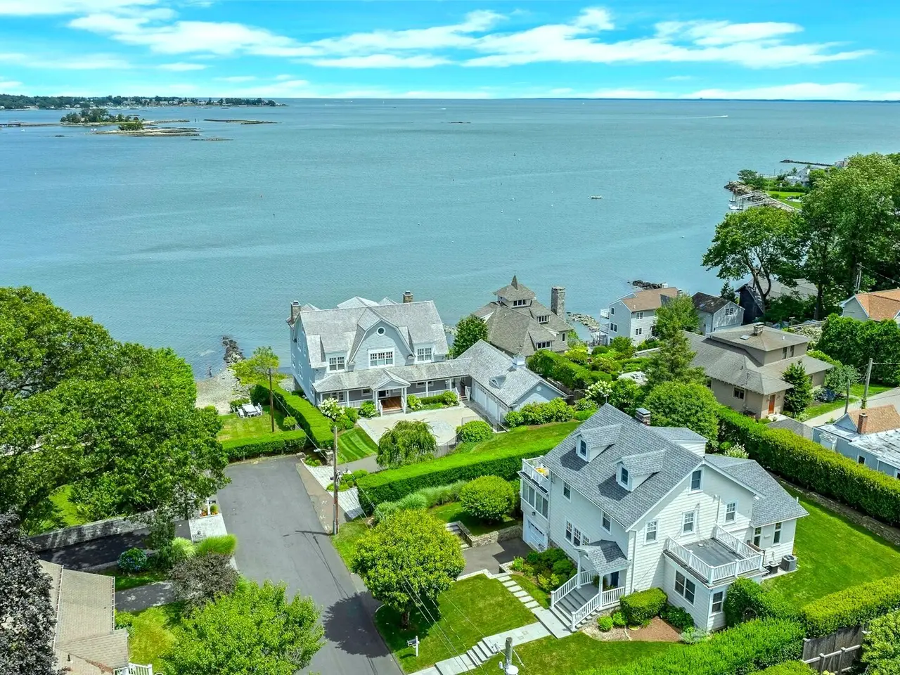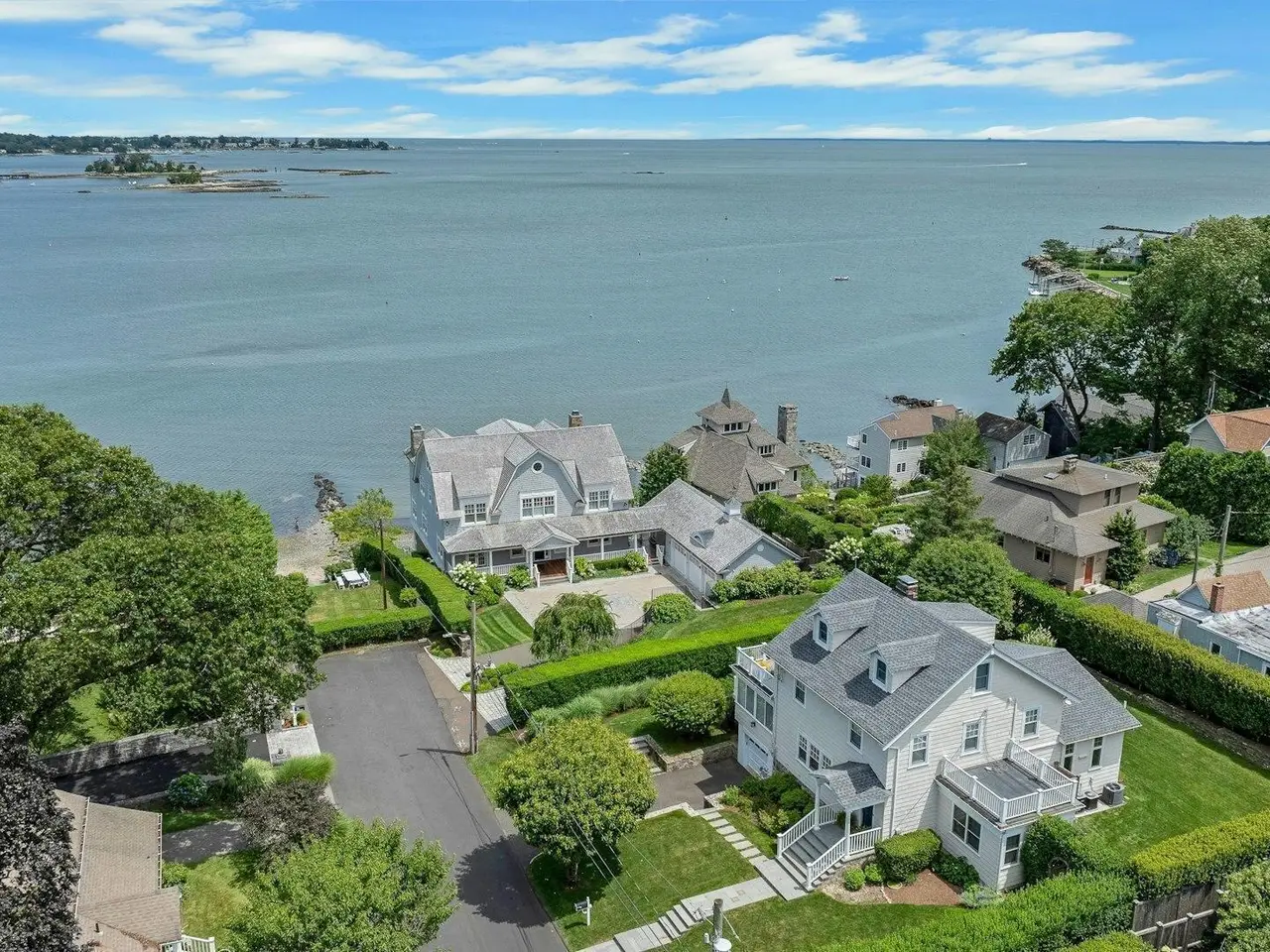 With sparkling water views and a private beach only steps away, this Shippan Point home is coastal living at its best! The living room with fireplace, sunroom, and open kitchen, dining, and family room all take in the views, with sliders opening to a new (2023) Ipe wraparound deck overlooking the Sound. Upstairs, there are two comfortable bedrooms and a primary suite with additional water views, a walk-in closet, an updated bathroom and a private deck offering panoramic vistas. A first-floor bedroom with an adjoining bath and a third-floor suite add versatility. Outside, a level yard framed by a beautifully crafted Pennsylvania fieldstone retaining wall, a hornbeam hedge, and a cedar outdoor shower-ideal for rinsing off after a day at the beach-completes this gem. Additional highlights: hardwood floors throughout, deeded beach rights, irrigation system, and raised garden bed. Located just minutes from downtown, train, and highways-NO flood insurance required! PLEASE SUBMIT ALL OFFERS BY TUESDAY AT 2:00 PM, SEPT 9TH