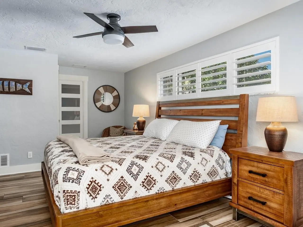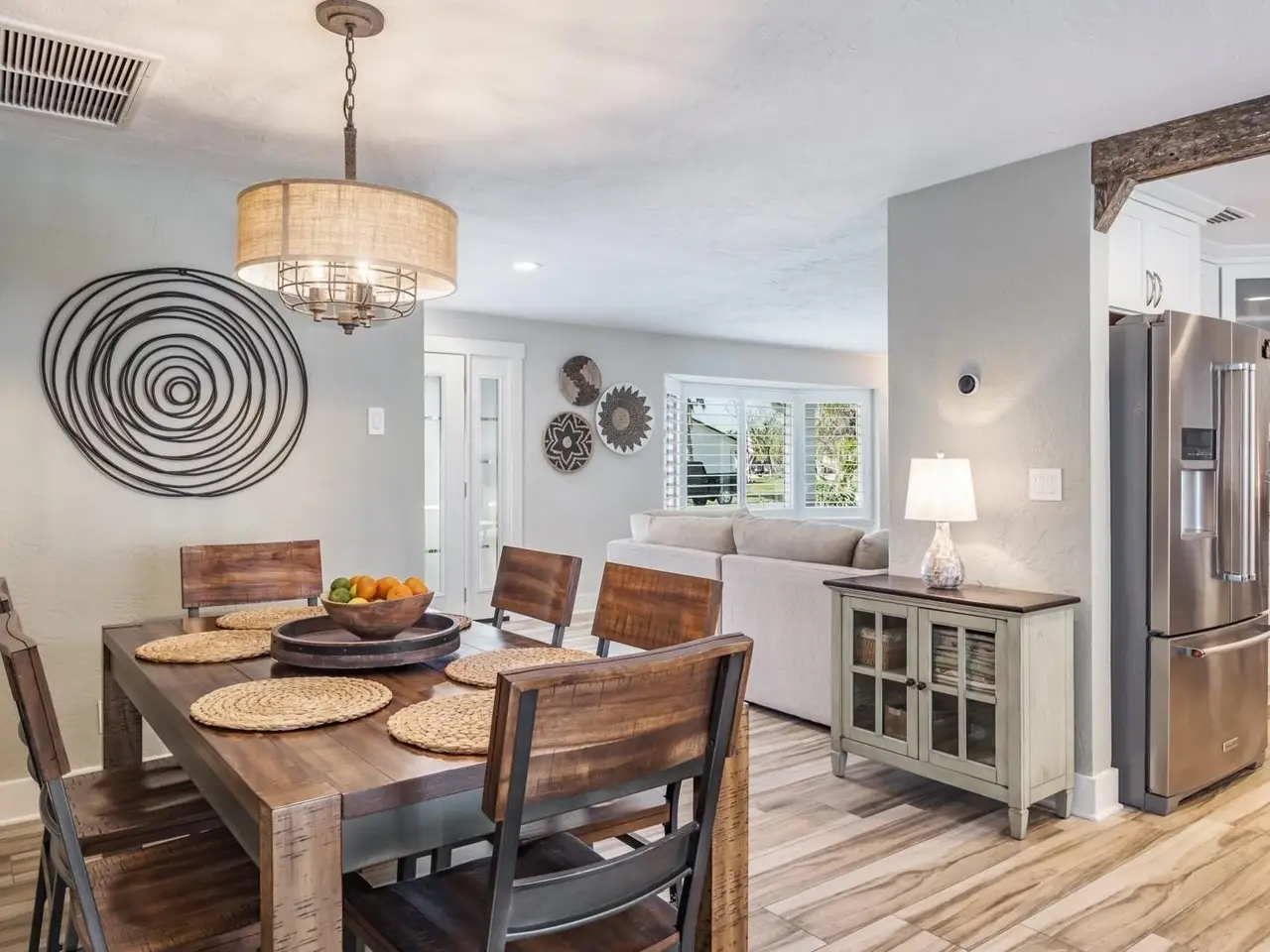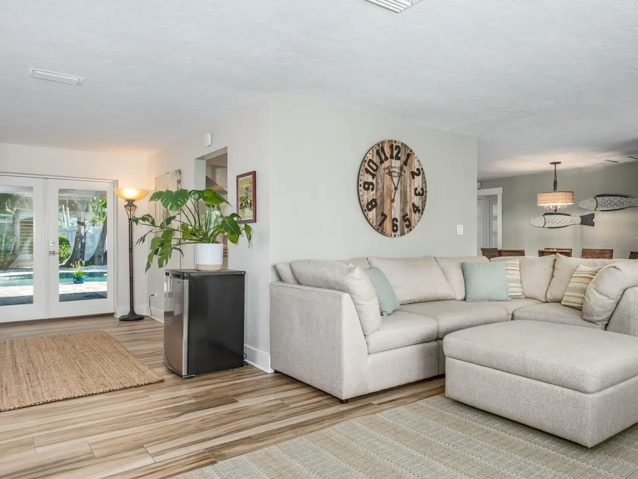Welcome to the secluded Island of Vina Del Mar! This 2BR/2BA coastal-inspired home in the coveted Vina Del Mar neighborhood offers light-filled, open-concept living with views of the landscaped backyard and saltwater pool. The updated kitchen features custom quartz countertops, all-wood cabinetry & pantry with soft-close drawers, and a striking 100-year-old cypress beam with matching accent trim. The split floor plan includes a spacious primary suite with an en suite bath, a walk-in closet with custom shelving, and a versatile office/den/nursery space with pool access. The guest suite offers a built-in closet and adjacent bath, with a custom pocket door for added privacy. Two distinct living areas provide flexibility—one for larger gatherings, the other is open to the kitchen with direct pool access. The covered lanai offers shade while overlooking the private backyard, with an adjacent lounge area ideal for cooling off indoors. Meticulously upgraded and kept, the home features a new roof (2025), pool pump (2024), water purification & filtration system (2022), water heater (2020), Air Knight purification system (2017), custom Pebble-finish saltwater pool (2017), wood plank-style porcelain flooring, plantation shutters, Nest smart thermostat & smoke/CO detectors, updated electrical panel, newer windows and doors, fresh paint, and more. The two-car garage provides additional storage, while underground power lines preserve unobstructed views. Nearby Vina Del Mar Park offers a playground, dog park, pickleball, tennis, and basketball courts. Cruise down to the beach, restaurants, shops and entertainment in famous Pass-A-Grille or even a short drive to the vibrant Downtown St Pete for nightlife and the St Pete Pier. Don’t miss your chance to live the Salt Life!