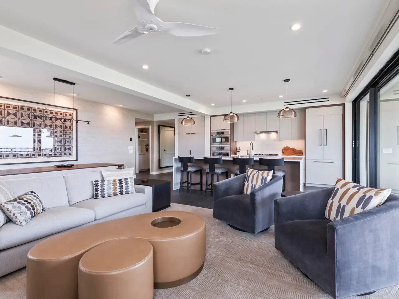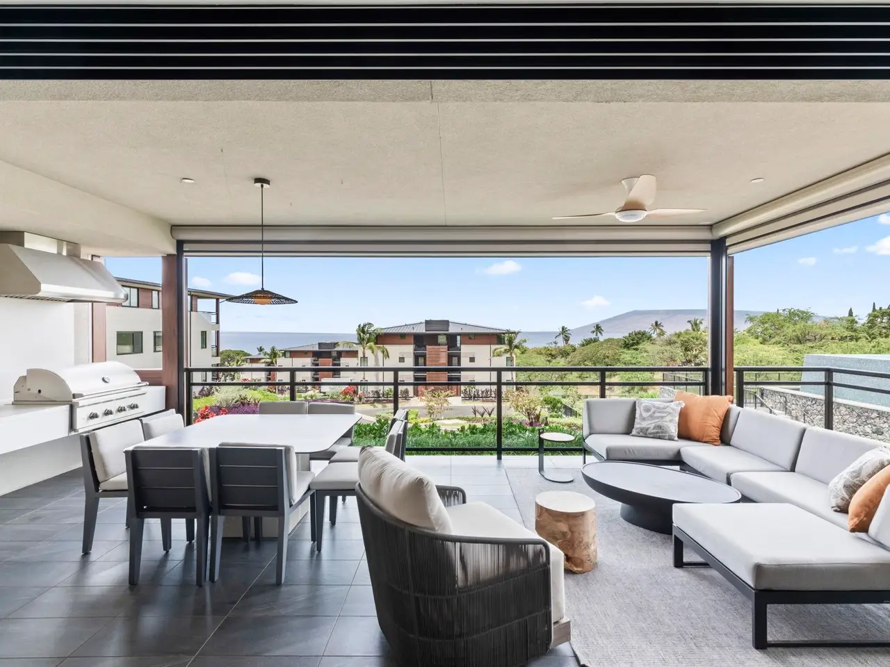 La’i Loa Luxury with Outstanding Ocean View! Wailea’s Newest Development and your golden opportunity to have it all is here! This gorgeous Turnkey Residence in La’i Loa comes with over $400K in luxury furnishings and decor - everything you need to begin the Maui life you’ve earned. Perfectly situated within the community, you will enjoy the pinnacle of island luxury in this exquisite turnkey residence. Upon entry, you can see how thoughtfully designed and lavishly appointed your new Maui home is, all courtesy of Philpotts Interiors. This masterpiece comes fully furnished with high end designer pieces, elegant wallpaper selections, and tasteful, refined finishes throughout. This amazing home is serene yet sophisticated, and the floor plan sits wide to the view, which offers views from all the living areas and the primary suite, which has it’s own dedicated lanai for privacy. A standout feature of this exquisite residence is the seamless indoor outdoor living feel. The wall to wall sliding glass doors retract fully into the wall and open to the oversized main lanai to maximize your Maui lifestyle where you’ll enjoy the built in Coyote gas grill, plus the motorized sunshades on both sides of the huge lanai. The incredible gourmet kitchen features top of the line Bosch Benchmark appliances including refrigerator, cooktop, range, microwave, and built in wine refrigerator, plus Fisher and Paykel two drawer dishwasher - everything you need for day to day living or upscale entertaining. Perfectly positioned near the world class amenities center, you will enjoy effortless access to the huge resort style pool with infinity edge and an additional dedicated lap area to one side, state of the art fitness center, steam and sauna in the facilities, plus beautiful covered and uncovered entertaining areas. Additional highlights include a giant storage room for the home, underground garage parking plus an additional dedicated parking space ground level, and elevator convenience on every level. Your new Maui home awaits with luxurious finishes and thoughtful design throughout - this home is truly move in ready - and offering the very best of the Wailea Resort Lifestyle and access to the best of the world class beaches, restaurants, and shopping in Hawaii. It is time to live the life you’ve earned!