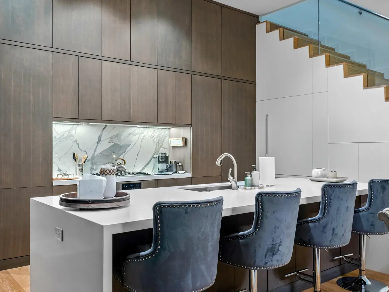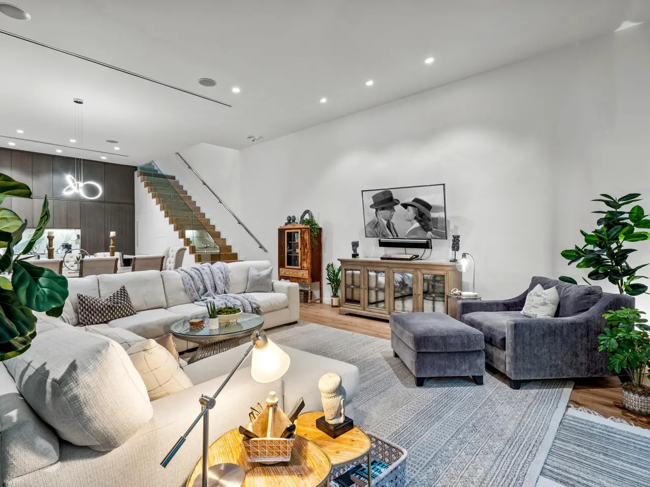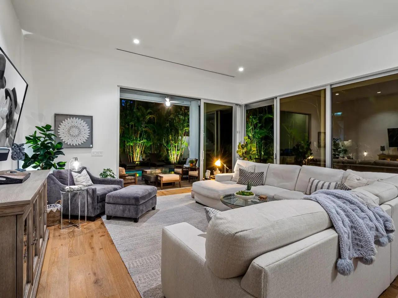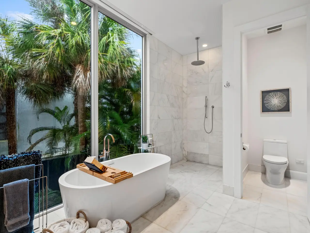 Near Atlantic Avenue and the ocean, this chic custom townhome, with no HOA, features a stunning open floorplan in a unique configuration that creatively elevates the living, dining and kitchen areas into one open, airy living space. Details include walls of glass offering garden and pool-patio views, custom cabinetry, and an outdoor entertaining area set within beautiful tropical landscaping.