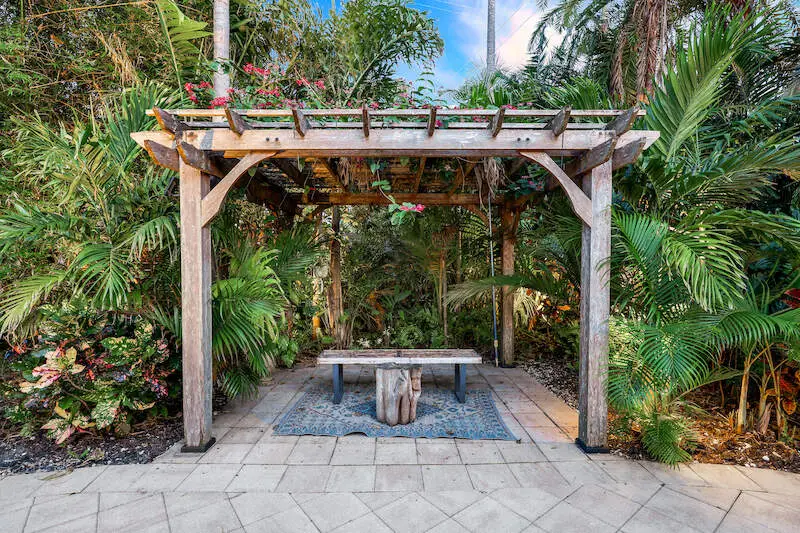 • Serene backyard with arbor and swing