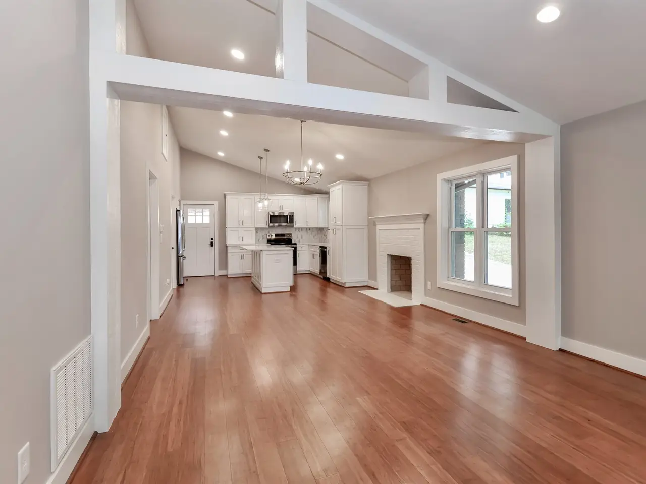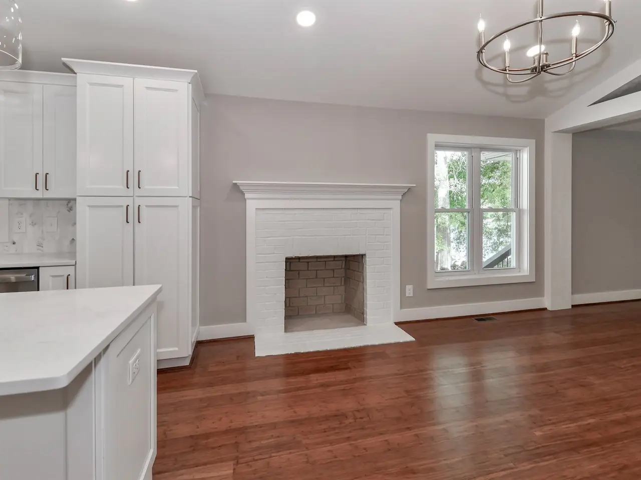 Working fireplace in living room and family room