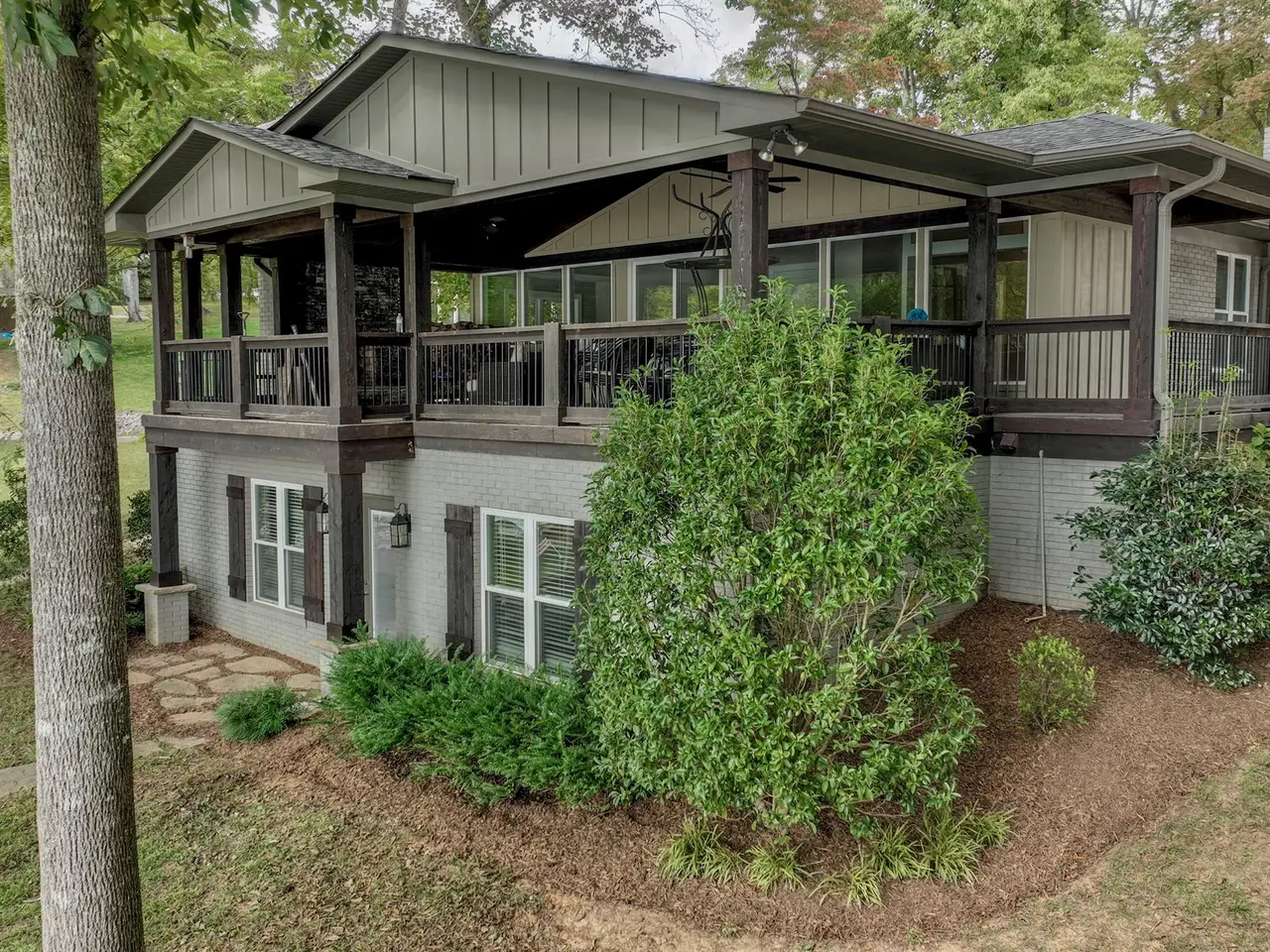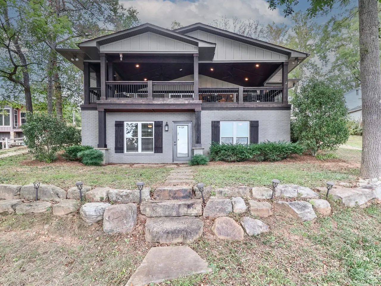 This 1964 lake house has been completely transformed and now looks like 2025 new construction. Every surface has been updated, and you will not be disappointed. Gutted to the studs with new plumbing and electrical throughout, this home features a fabulous new kitchen with modern appliances, a living room with fireplace, and an amazing 675 square foot covered deck with a fireplace and million-dollar lake views. The main level offers two bedrooms and one full bath, along with a half bath. The walkout basement includes a family room with working fireplace, sink, and refrigerator, plus two additional rooms that can serve as a bunk room and flex space, along with a full bath. The septic system was installed in 2015 and is rated for two bedrooms, but the home provides plenty of space to spread out with family and guests. Additional updates include an electric water heater (2025), furnace and central air (2015), roof (2015), and two thermostats for upstairs and downstairs. The dock has new electrical and a fan, and the garage with a new door offers lake views and works well for storage or a workshop, but is not suitable for vehicles or boats. Exterior updates include a new seawall, new driveway and parking areas, fresh landscaping, and new steps leading to the dock. Mountain Creek Park is located within one mile of the property.