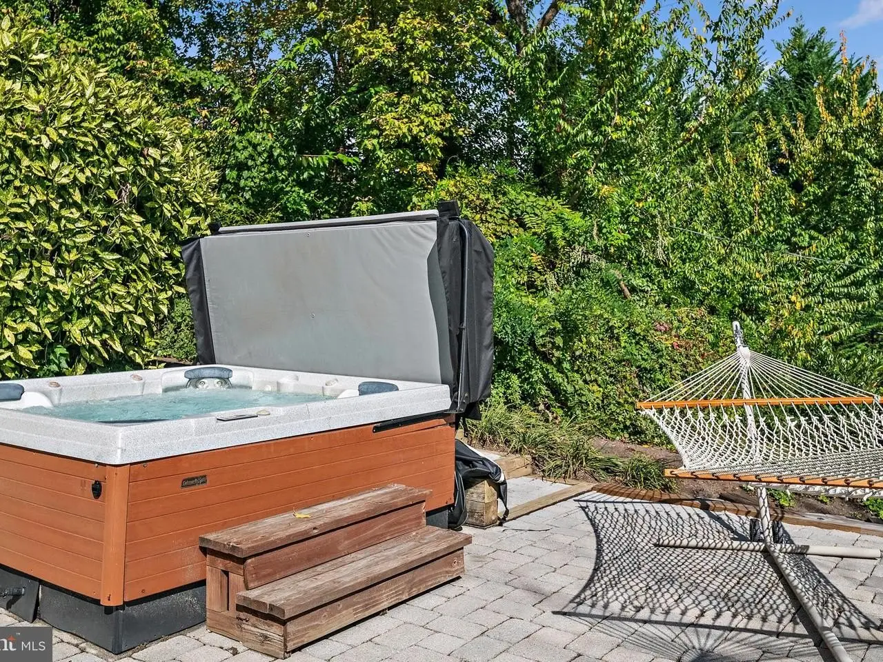 Tranquil yard with hot tub and Koi Pond