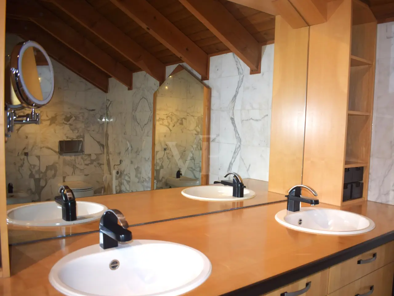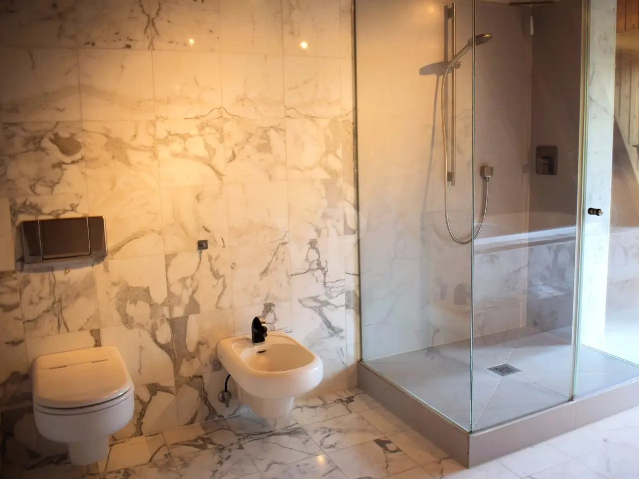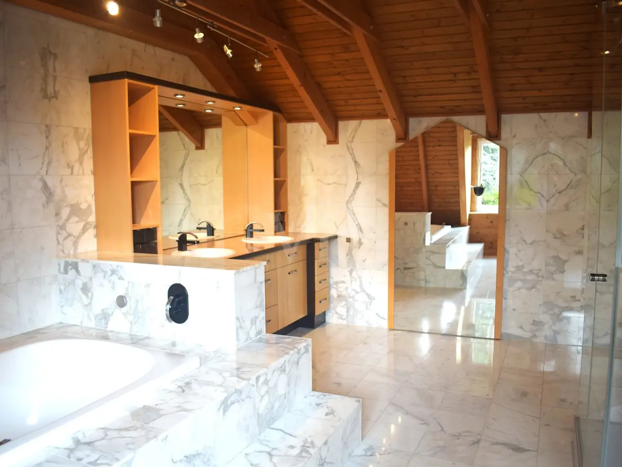 Marble-lined master bathroom