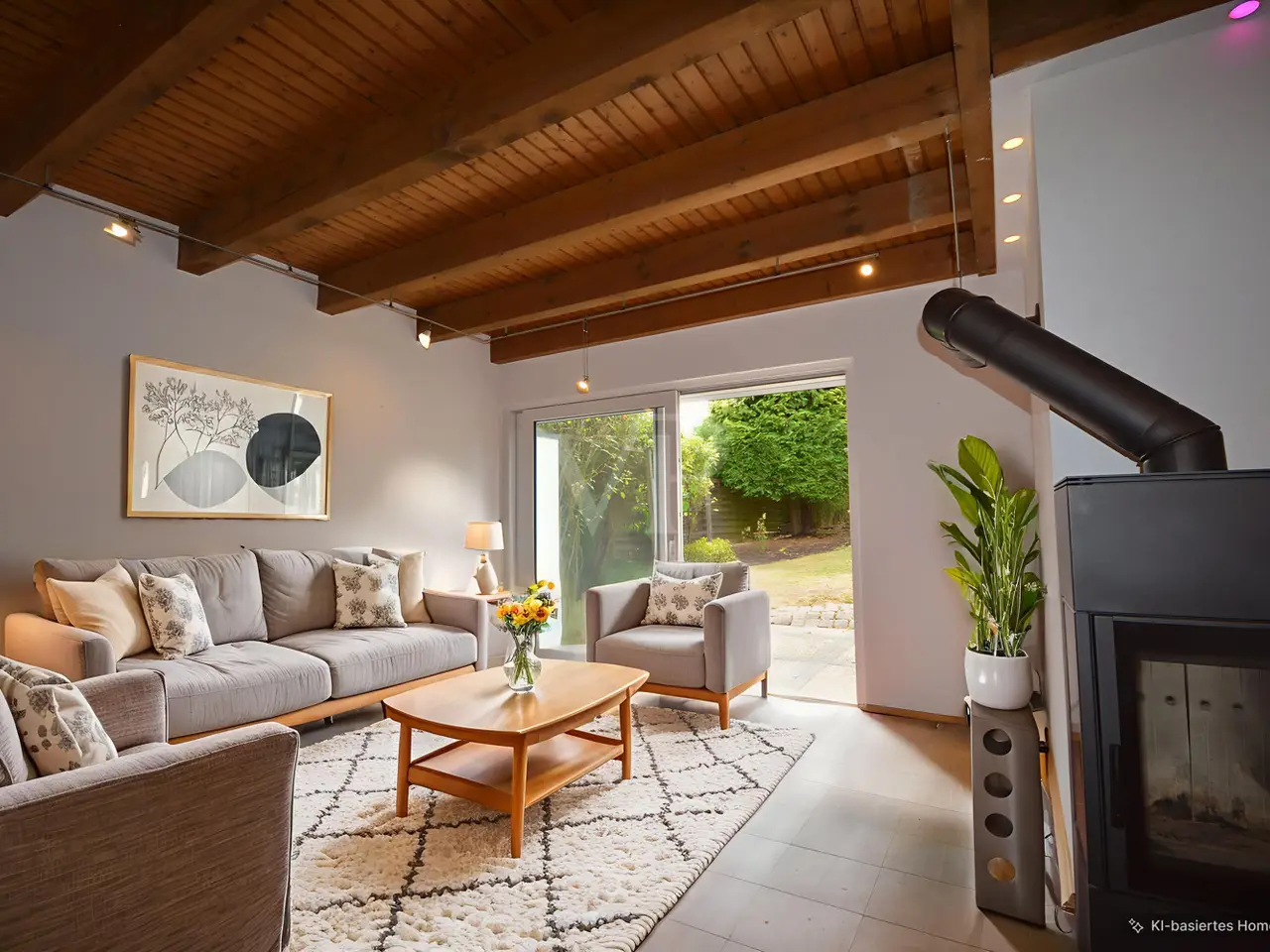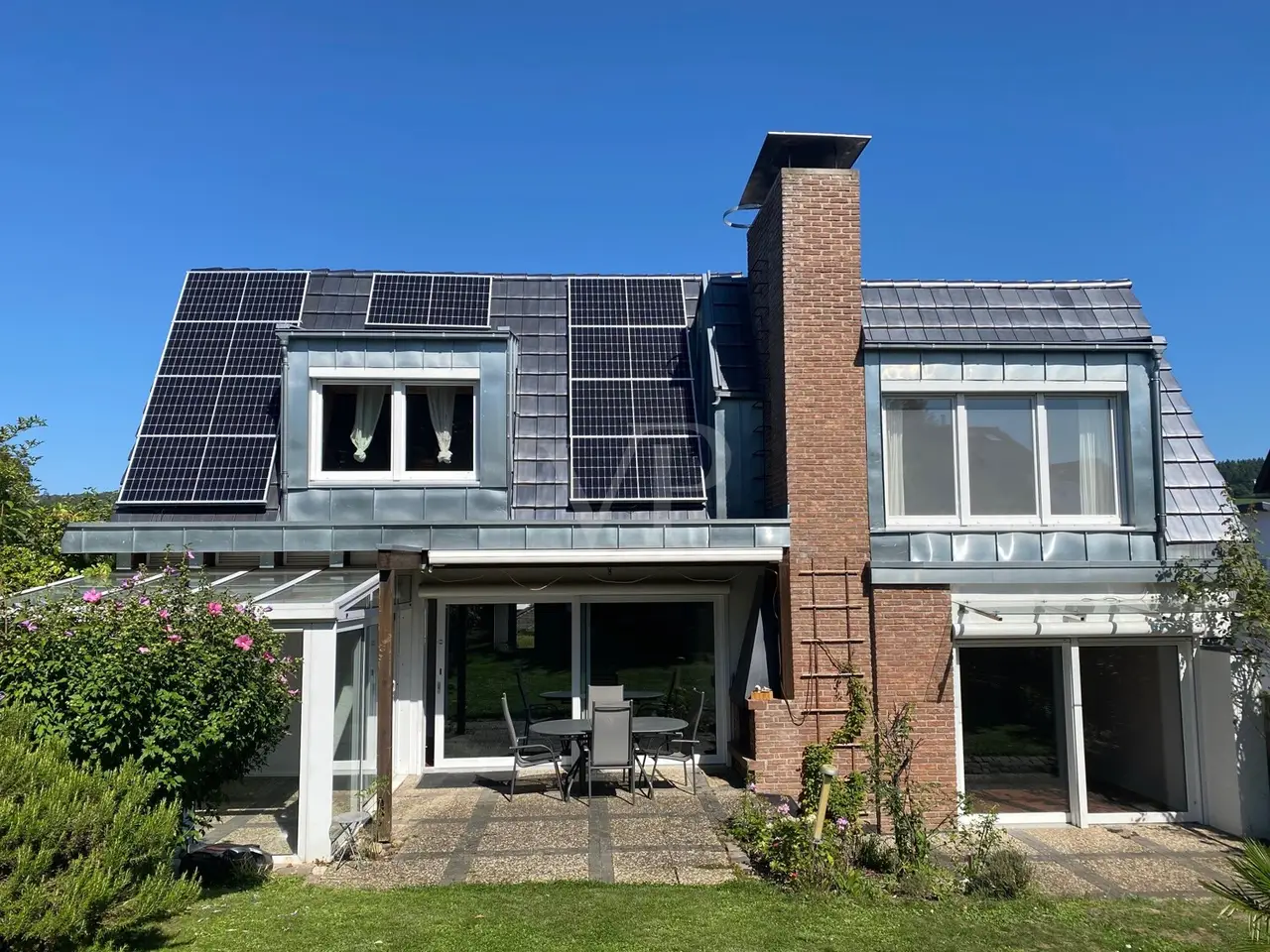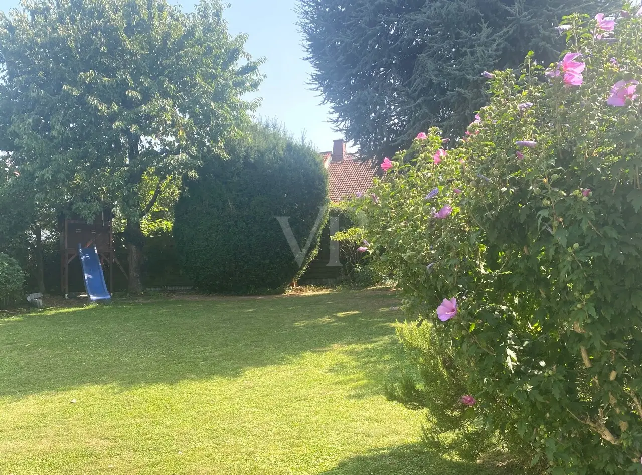 This modernized detached house from 1979 is ideal for garden and sustainability lovers. The property, which underwent extensive modernization in 2011 and most recently in 2023, offers an appealing living space of around 139 m² with a generous plot of around 650 m². The room layout combines feel-good living comfort and practicality. The house has a total of five rooms, including three spacious bedrooms that can be used individually as offices, children's rooms or guest rooms. Two bathrooms spread over two floors avoid queues at peak times. The luxurious master bathroom in particular, lined with marble tiles, is an inviting wellness oasis with a large bathtub and modern shower. The heart of the house is the spacious living room with split-level design and floor-to-ceiling windows, with harmonious views and sightlines that provide direct access to the garden and terrace. Here you can spend cozy evenings in front of the fireplace or receive guests in an inviting atmosphere. The underfloor heating ensures a pleasant underfloor climate. The kitchen includes high-quality equipment with modern electrical appliances and offers plenty of storage space. Additional convenience is provided by a spacious basement room in the basement, which can be used flexibly - whether for working, accommodating guests or pursuing a hobby. The well-thought-out arrangement of the rooms allows optimal use of the available space and offers all residents sufficient privacy. The energy-efficient air-heat-water pump, which not only covers the house's heating requirements in an environmentally friendly way, but also reduces operating costs in the long term, is particularly noteworthy. A new photovoltaic system with a 10 KW battery storage buffer reduces energy costs to 5 euros per month! This is a future-oriented living space that takes both ecological and economic aspects into account. The outdoor area of the house creates a pure vacation feeling at any time of year thanks to the terrace with outdoor fireplace and the cozy conservatory. The spacious garden area allows for plenty of gardening activities or the creation of play areas for your children. The spacious garage is very practical, providing ample space for bicycles or children's equipment such as bobby cars, baby carriages or scooters in addition to a parking space and wall box. There is also an additional washbasin next to the passageway from the garage to the living room, so that any residue from the soles of shoes can be washed off here quickly and carefree. The location of the property combines quiet living with easy access to the urban infrastructure. Shopping facilities, hairdressers, schools and leisure activities are all within easy reach, making everyday life convenient. Summary: All in all, this detached house offers high-quality, energy-efficient living in an absolutely peaceful environment. The harmonious combination of many wooden elements, modern furnishings and well thought-out room layout creates a solid basis for long-term harmonious coexistence.