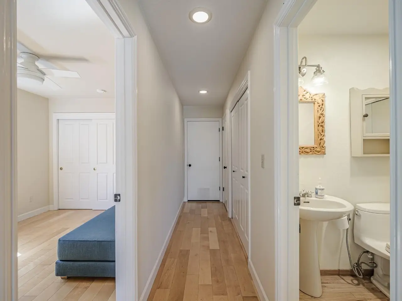 Just Listed in Scotts Valley! Neatly tucked away on a quiet cul-de-sac, not far off the beaten path, 14 Sageland Court is situated on a large sunny lot and features a versatile spacious open floorplan with vaulted ceilings, abundant natural light, warm wood floors, wood burning fireplace, and a combined kitchen, living, and family room space, perfect for family gatherings and entertaining with easy access to the backyard deck and pool. The well thought out sensible floor plan incorporates three upstairs bedrooms, including the primary bedroom and bath, with views of the backyard pool, and an additional main level bedroom and bath and inside washer & dryer area with an attached two car garage. This home also boasts many energy efficient upgrades: Solar electric panels, electrical storage batteries, EV charging station, on demand water heater, hydronic solar panels for heating the pool. Location, Location, Location! Take advantage of one of the most convenient locations in Scotts Valley, close to schools, a few minutes drive to Hwy 17 and walking distance to the local market and shopping center with restaurants, specialty shops, and just a ten-minute drive to the beach and downtown Santa Cruz and 20 minutes to Los Gatos.