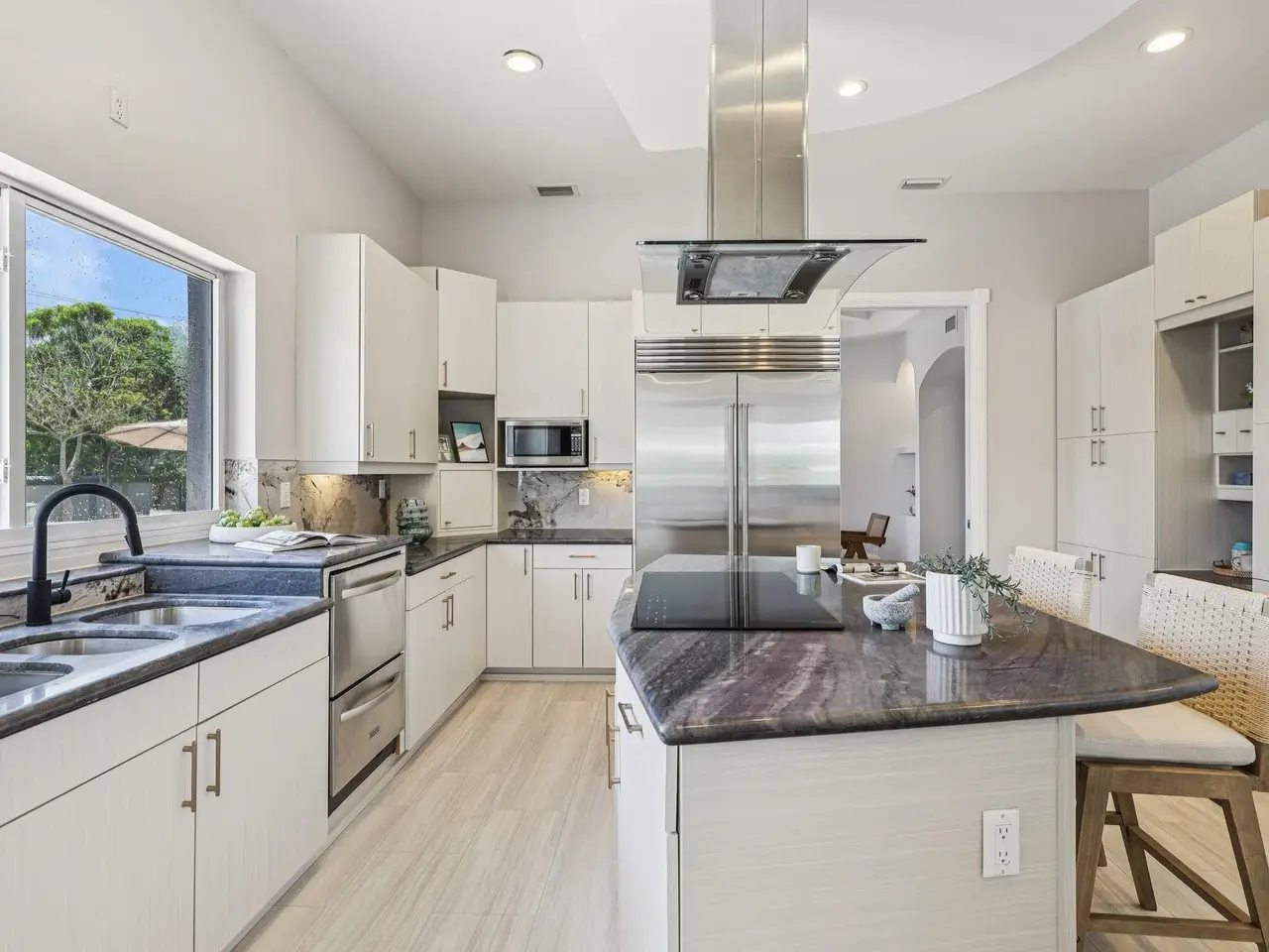 MOTIVATED SELLER!! 285 feet of waterfront on a point lot in prestigious Lighthouse Point with ocean access and no fixed bridges! This 5 bed, 6.5 bath home has 2 additional Bonus Rooms (home offices), Reading Nook and is loaded with upgrades! Boasting a new metal roof, 150ft composite dock with 20,000 pound boat lift, the main kitchen has been recently updated along with a spa inspired primary bathroom. Rest assured with hurricane impact windows and doors providing protection from the elements. With beautiful ceiling details throughout, this property offers a unique private suite with full kitchen, washer/dryer and designer finishes. Perfect for in-laws or long-term guests. This home has been professionally decorated to provide warmth and comfort. Move-in ready—just bring your water toys!