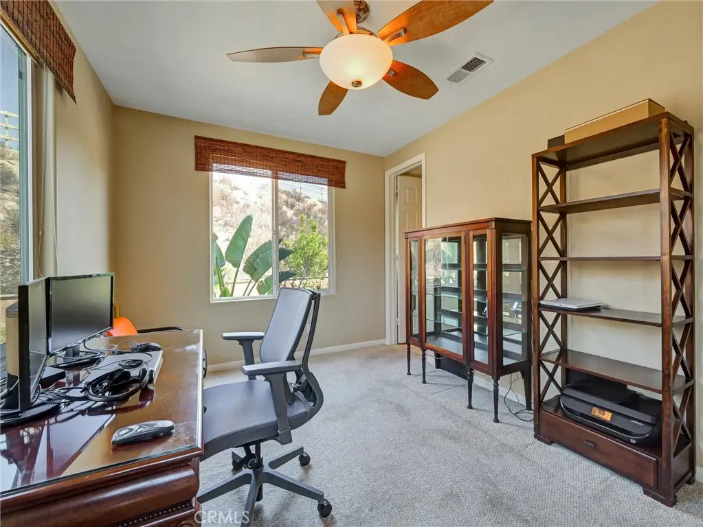 Prime Norco Hills 5 Bedroom, 4-1/2 Bathroom Home at the end of a Cul de Sac in a great Neighborhood. Picture perfect Curb Appeal, with a Four-Car Tandem Garage, and room to park an RV and multiple Vehicles. This substantial Property is on .75 acres, with plenty of room to make all your dreams come true. As you enter the Front Door, Vaulted Ceilings set the tone for bright and spacious Rooms with lots of Windows. Formal Living Room with a Fireplace - one of three in this home - and a formal Dining Room lead to the open Kitchen with abundant Cabinet Space, a huge Island, a Butler's Pantry, a Walk-in Pantry and Breakfast Nook. The Kitchen opens to a large, cheerful Family Room with a cozy Fireplace, and custom Built-in Cabinets. Beyond the Family Room is an Office Space, with an ensuite full Bathroom, which could be modified to make a 5th Bedroom. A Powder Room and Laundry Room complete the First Floor. Upstairs you will find a grand Primary Suite, with an expansive Sitting Room and another Fireplace. Two Walk-in Closets, a sizable ensuite Bathroom with a jetted Soaking Tub and dual Sinks, including a built-in Vanity, complement the space. A roomy Loft, which opens to the main upstairs Hall, and three additional oversized Bedrooms, are also on the Second Floor. Two of the Bedrooms share a Jack and Jill Bathroom, both with Ceiling Fans and Mirrored Closets. One of the rooms also has an Alcove, perfect for a Workstation or Reading Nook. The fourth Bedroom, with its own ensuite Bathroom, also connects to the Loft, which could easily function as a second Primary Suite, or a fun Playroom. This Home has so much to offer including multiple Fruit Trees - avocado, orange, tangerine, guava and more! With a desirable Location, a huge Lot, large-scale Rooms and a perfect Floorplan, the possibilities are endless. Come check out this great Property!