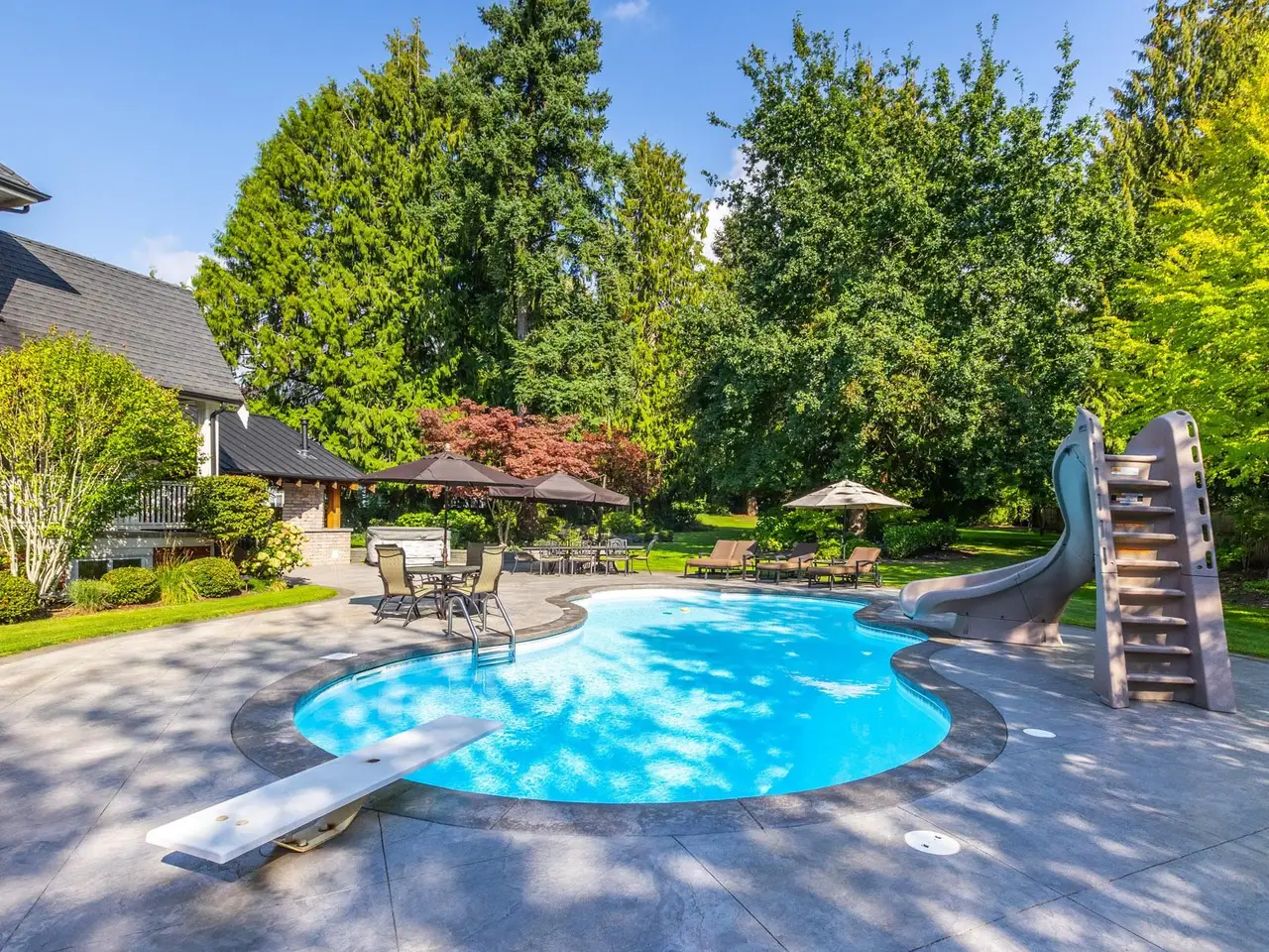 Stunning family home in UPPER MURRAYVILLE! Featuring natural stone countertops, wide plank hardwood floors, theater room, 9 bedrooms, 8 bathrooms, new heat pump and too many special features to mention. Must See lush backyard oasis with an inground pool, fire pit, beautiful garden seating areas and a covered outdoor kitchen and fireplace—perfect for entertaining. The 2 bedroom basement suite and a 2 bedroom in-law space with a loft, gives you ample room for the entire family. Private workshop with a powder room, plus garage space for 5 vehicles. Live on this meticulously maintained nearly 1 acre in Historic Murrayville now, subdivide later. A truly rare opportunity!