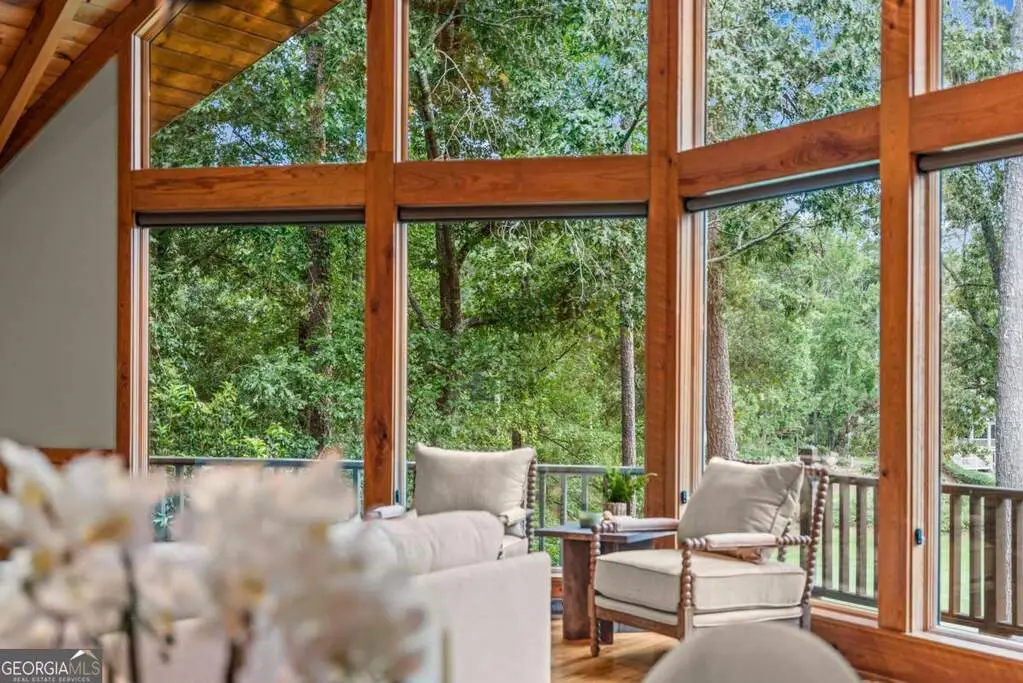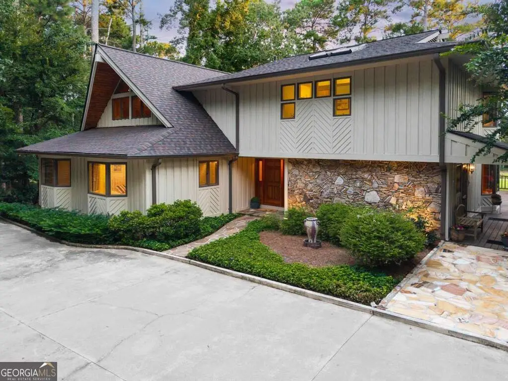 This beautifully maintained golf course home offers sweeping views of holes 2, 3 & 4 of The Landing course, a pond view, and looking down the fairway to the stunning water of Lake Oconee-views from this home are so exquisite, they have been featured in Reynolds Magazine Advertisements over the years. Designed with large, light-filled spaces and walls of windows, the open-concept layout brings the outdoors in. The main level features two bedrooms, a gourmet kitchen, and expansive living and dining areas perfect for entertaining. Enjoy peaceful mornings and breathtaking sunsets from the large multi-level wraparound deck. Ideally situated in The Landing of Reynolds Lake Oconee with access to world-class amenities, golf, lake life, and more. This is a rare opportunity to own one of the best view properties in the community. Seller makes a Club membership available for Buyer to explore how they can enjoy golf, sporting grounds, tennis, pickleball, fitness, recreational, and culinary amenities of a world-class private club.