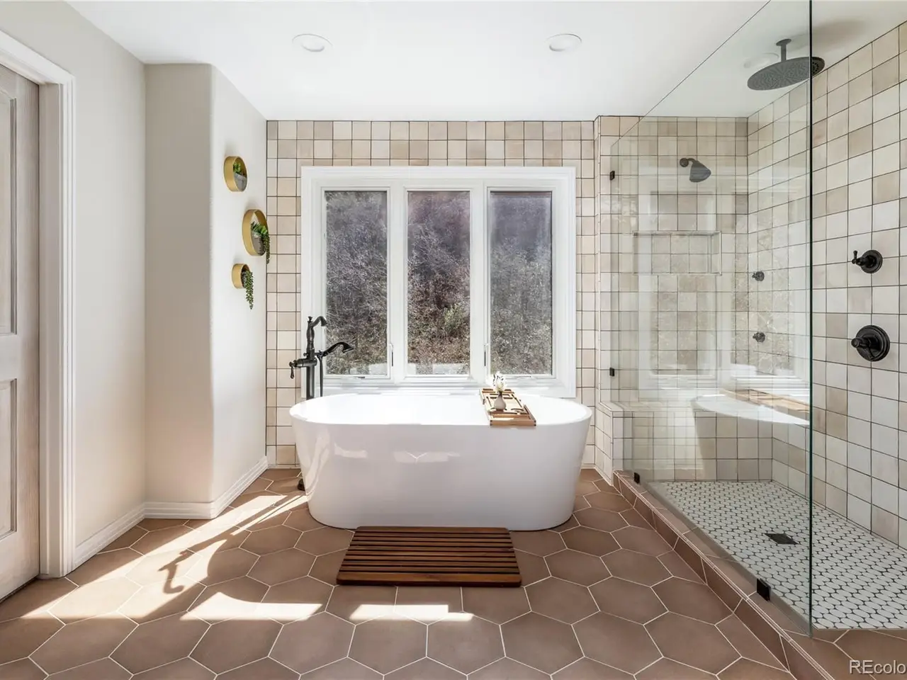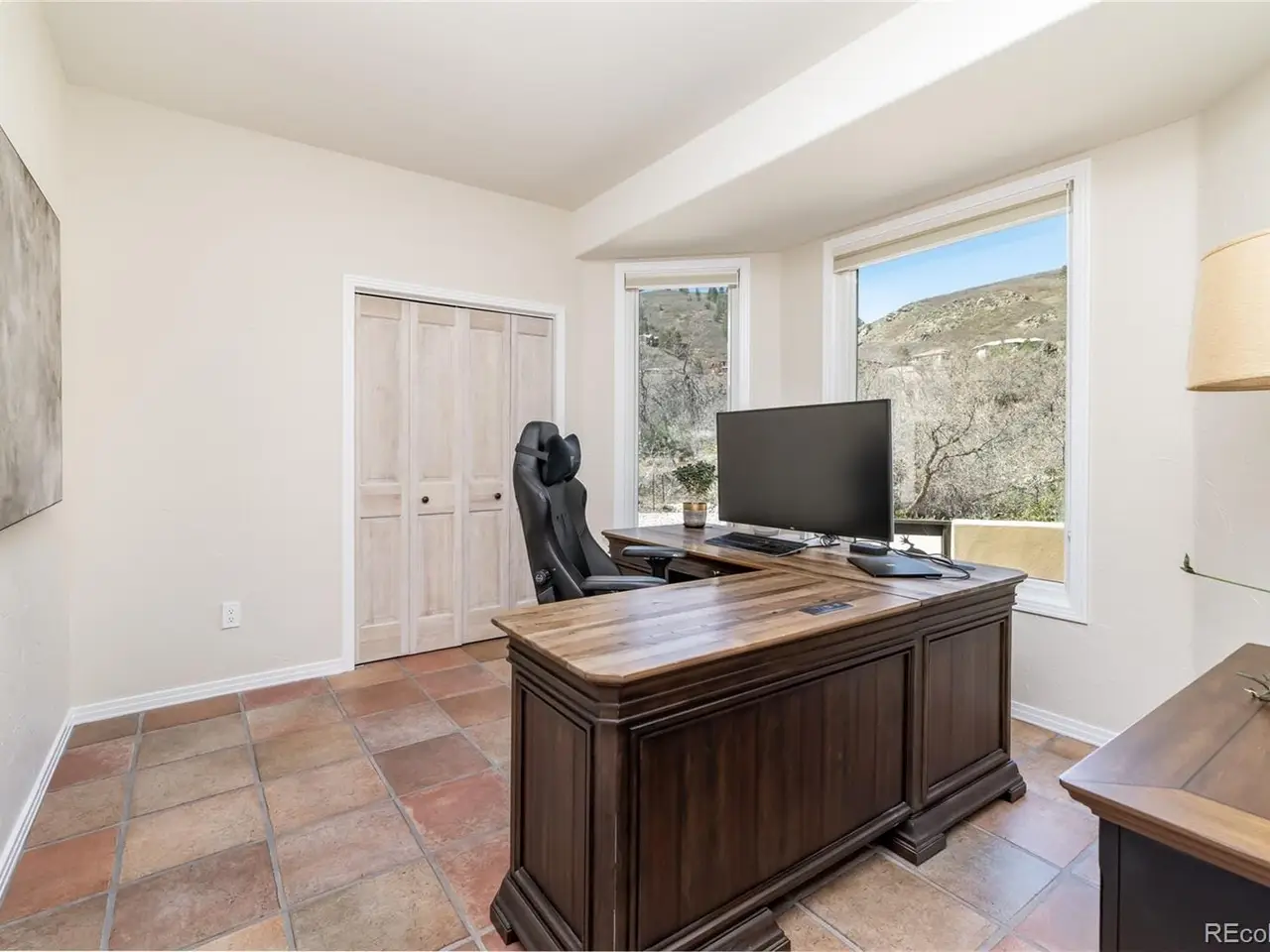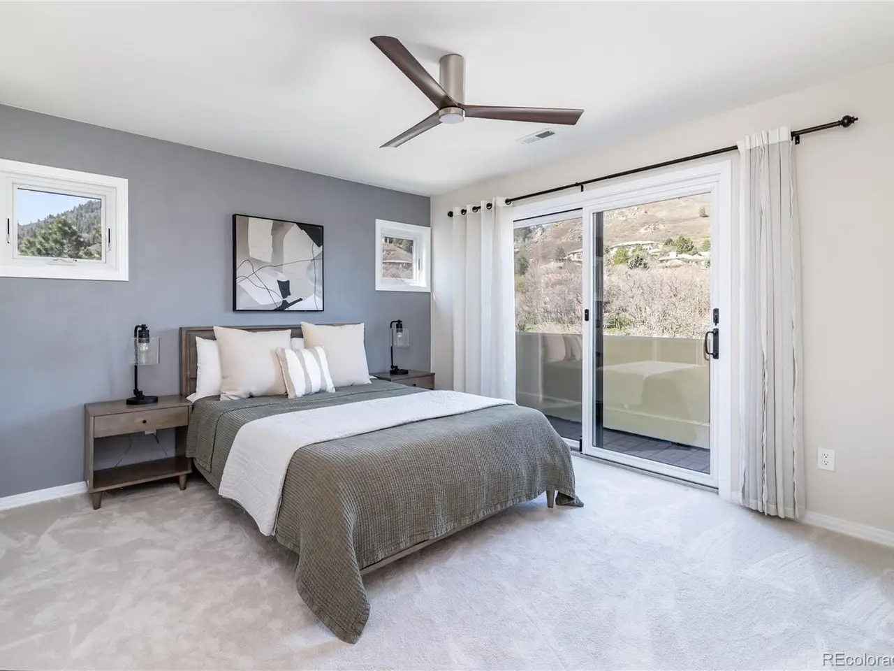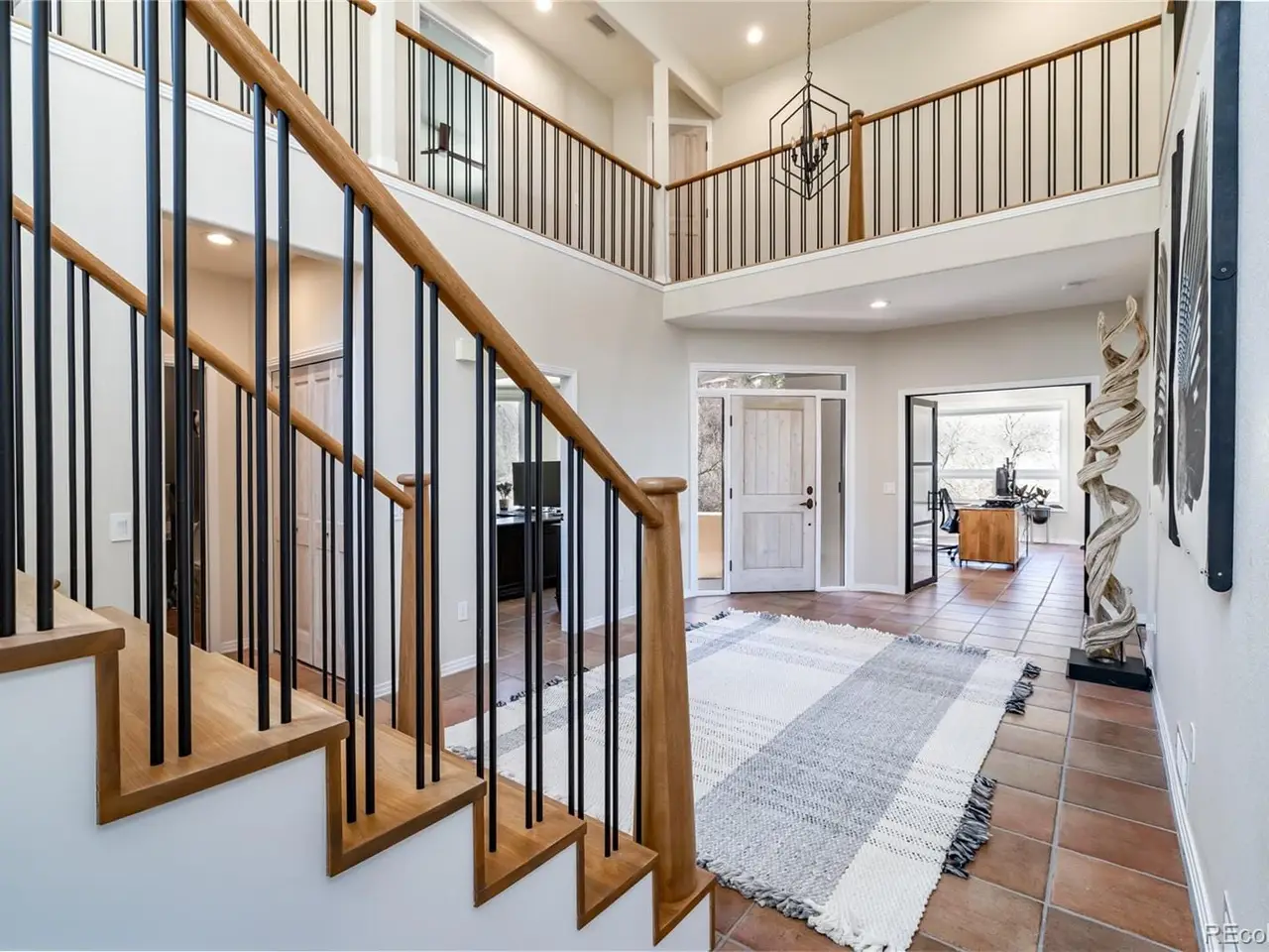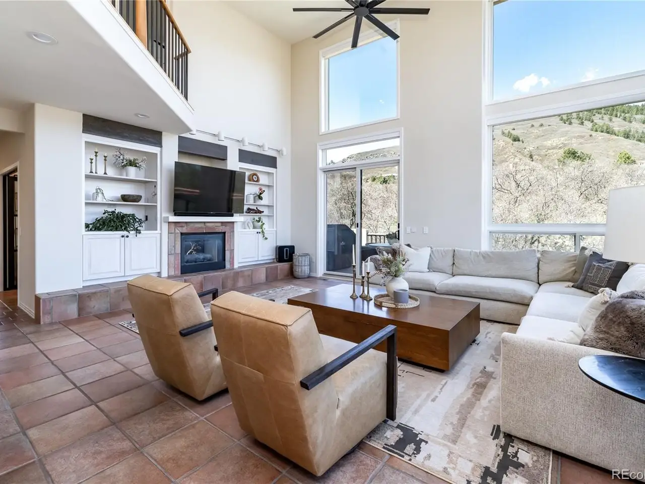 An inspiring setting amongst magnificent red rock formations, this newly renovated home merges seamlessly with its stunning surroundings. The striking contemporary residence has been crafted using the finest materials, perfect for entertaining as well as more intimate family gatherings. Recently replaced stucco + refinished deck, balcony, garage & front doors, and new concrete installed on portions of the front driveway. Freshly painted interior features newer kitchen & baths, new windows by Renewal by Andersen + new automatic blinds, interior fans & light fixtures throughout. Newer HVAC & upgraded electrical systems add to the impeccably maintained property. Enter to a large foyer with beautiful staircase, flanked by handsome study and formal dining room, each with access to patios. Chefs kitchen offers high-end appliances, custom cabinetry, quartzite countertops & marble tile backsplash, open to a sun-drenched breakfast room as well as double-height great room highlighted by tile floors, fireplace & built-ins + 2-story windows looking out to the deck/patio and huge expanses of scrub oak & natural grasses beyond, infusing the entire property with glorious views of the spectacular red rocks. Guest bedroom, powder room & remodeled laundry/mud room complete the main level. On the 2nd level you find a primary suite with newer wood floors, sitting area, balcony, dual walk-in closets & new, spa-like 5pc bath. Loft, bedroom en suite with full bath & 2 bedrooms with adjoining 4pc bath are also upstairs. Walkout level is comprised of spacious family room, 2 bedrooms, full 4pc bath, storage/mechanical as well as private nannys quarters including living room, bedroom, plus newer kitchen & full bath. Both areas open out to a large flagstone patio featuring newer hot tub, perfect for relaxation after hiking on the impressive 12 miles of private hiking trails in the community, or golfing on nearby Roxborough golf course, renowned as the most scenic golf course in Colorado.