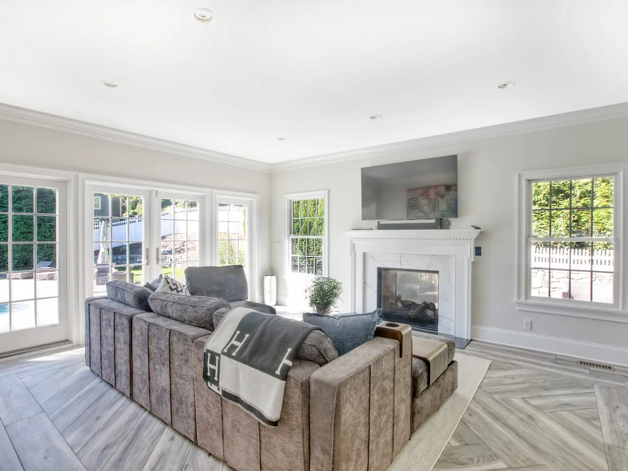 Welcome to 7 Curt Terrace - a beautifully remodeled center-hall colonial offering the perfect blend of luxury, comfort, and indoor-outdoor living. Set on a peaceful cul-de-sac, this 5-bedroom, 4.5-bath home has everything you've been searching for. Completely renovated in 2018, the home features an impressive open floor plan highlighted by a stunning gourmet kitchen with a 16-foot quartz island - ideal for entertaining - that flows seamlessly into the spacious family room and inviting den/office. Upstairs, you'll find five generous bedrooms along with additional bonus rooms on the top level, offering endless possibilities for a home gym, playroom, or guest space. Step outside to your private backyard oasis, complete with a heated pool, poolside bathroom, and an oversized wraparound deck with an outdoor fireplace - perfect for gatherings year-round. The yard is thoughtfully screened for privacy, creating a true retreat. Please note: Square footage does not include the finished lower and upper levels, adding even more living space to enjoy. This home truly checks every box. Don't miss the opportunity to make 7 Curt Terrace your new address!
