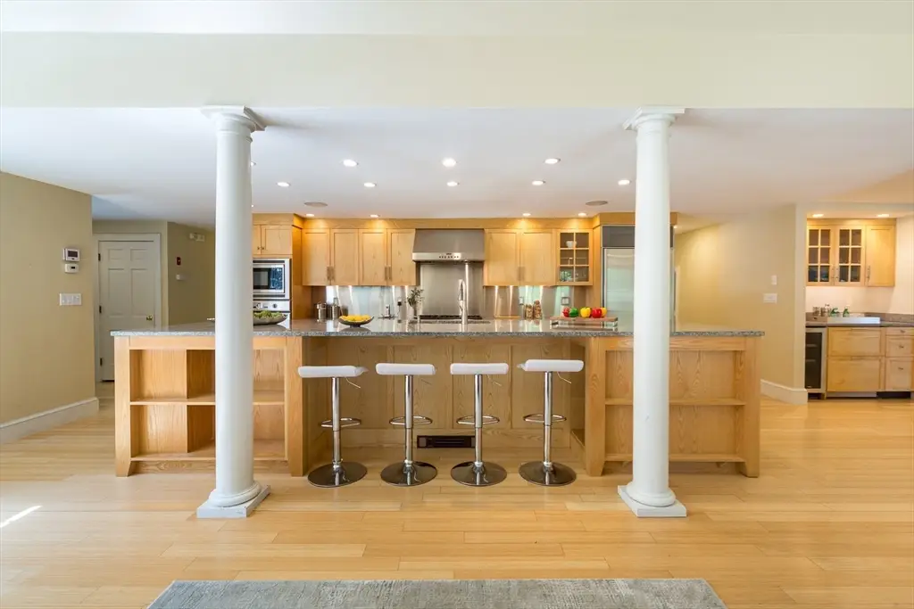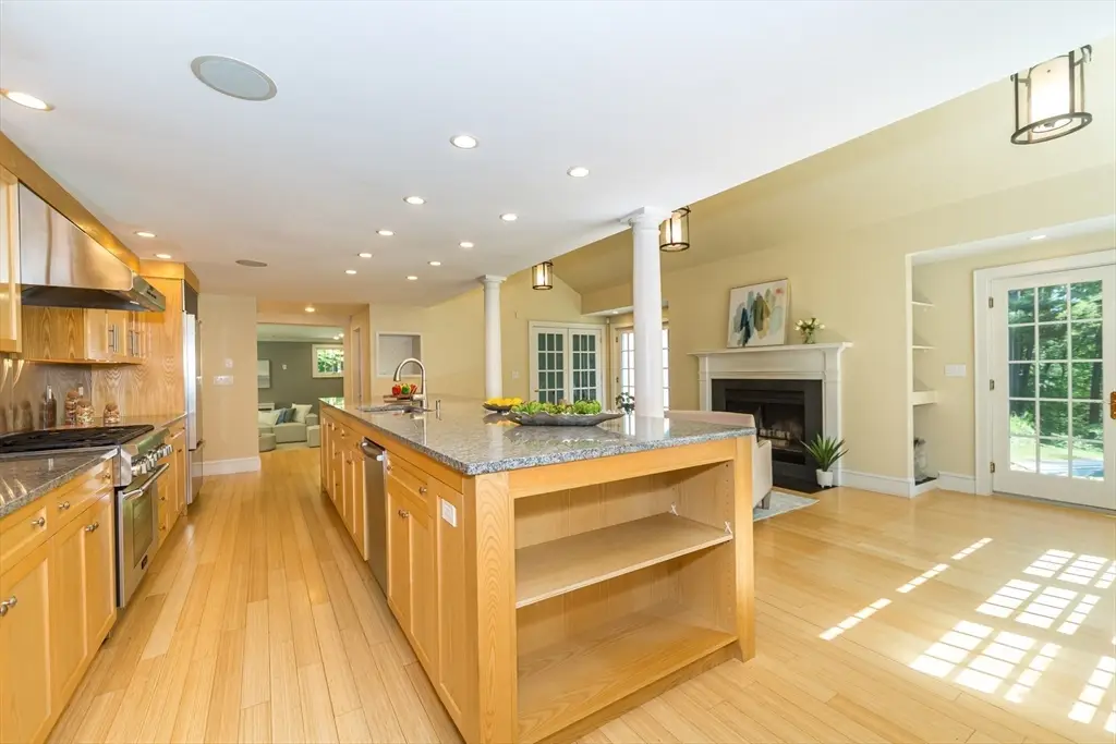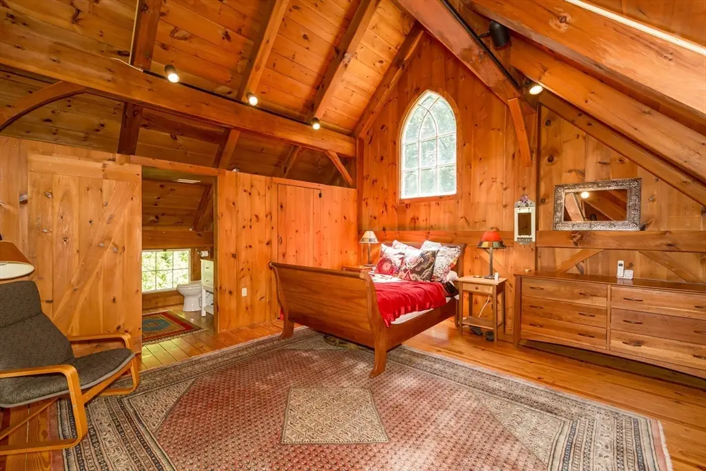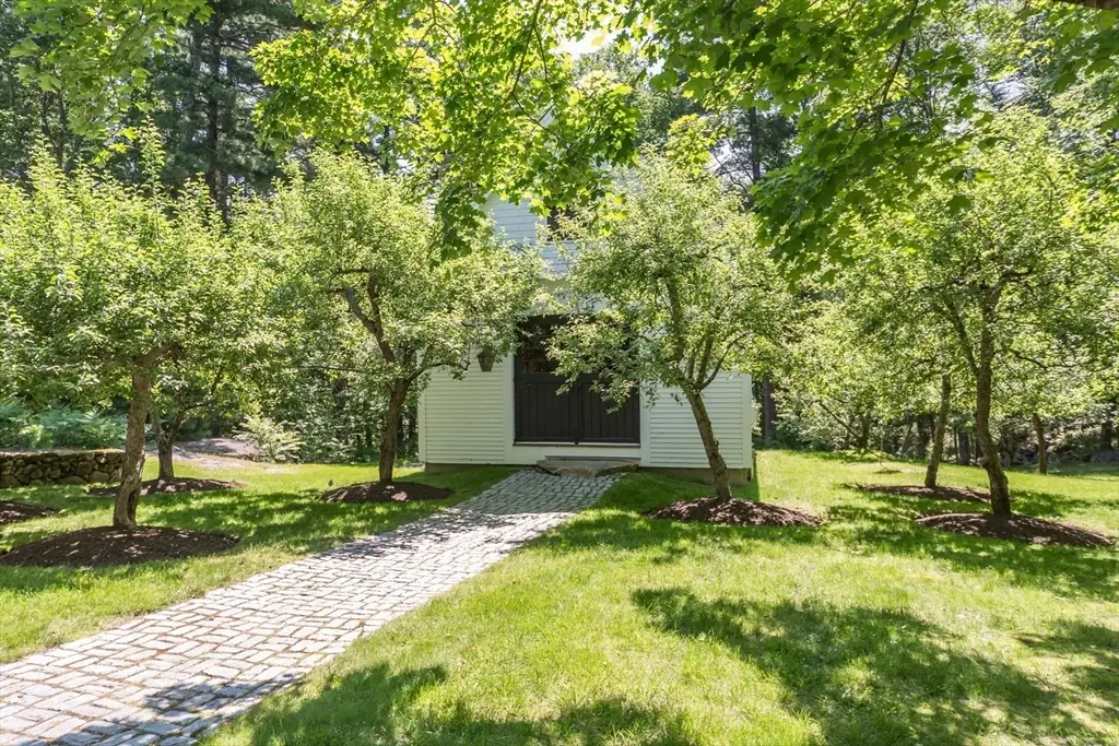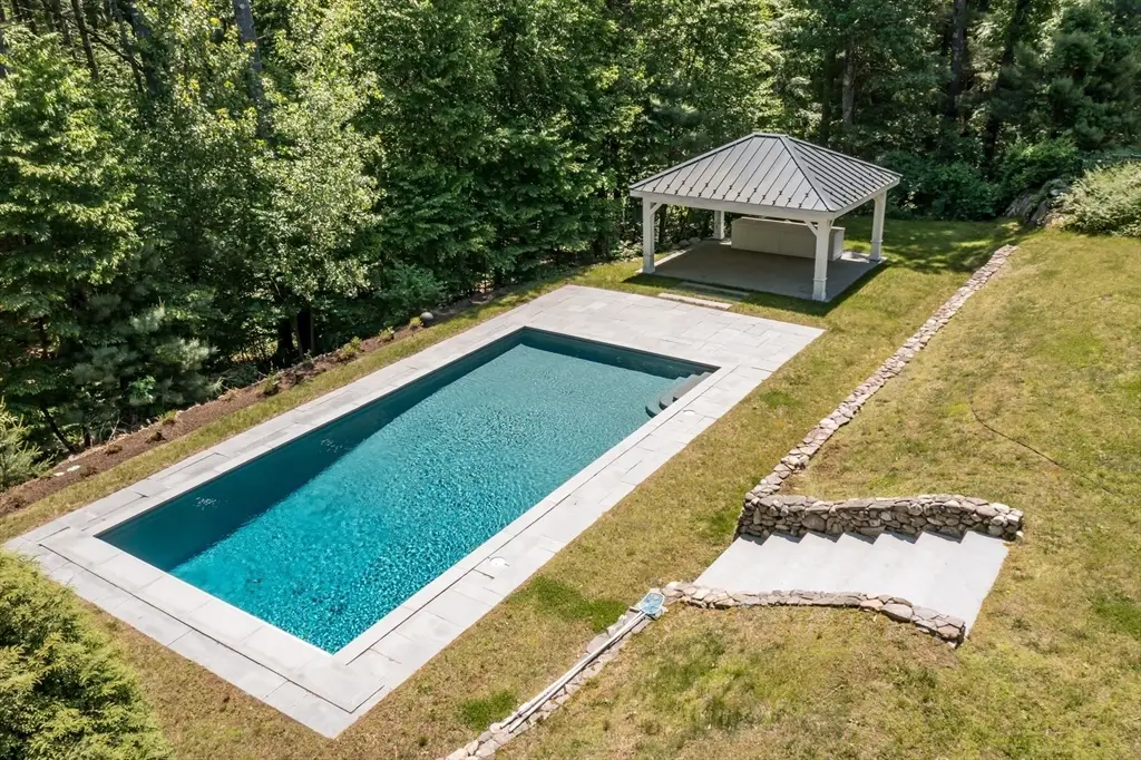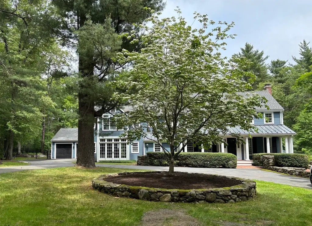 Nestled along a quiet country road, this stunning property offers the perfect blend of rustic charm and refined living. This beautifully crafted home exudes warmth and character. Lots of windows and French doors bring the outside in. The chef's kitchen boasts a fireplace, butler's pantry, large island, and gas cooking. The mud room is huge with plenty of closet space and shelves. The first floor office has its own entry, with a bath nearby. Main bedroom has a cathedral ceiling and another fireplace. The very private outdoor living space includes a saltwater pool that is just steps away from the patio and a year-round spa. Offering separate additional living space is a VERY COOL 3 Level Circle B barn, with a stone fireplace, open living area, a loft, and a lower level to accommodate 2 horses. The professionally landscaped grounds are accentuated with cobblestone and brick pathways, and direct trail access. All this and one of Massachusetts best school systems!!