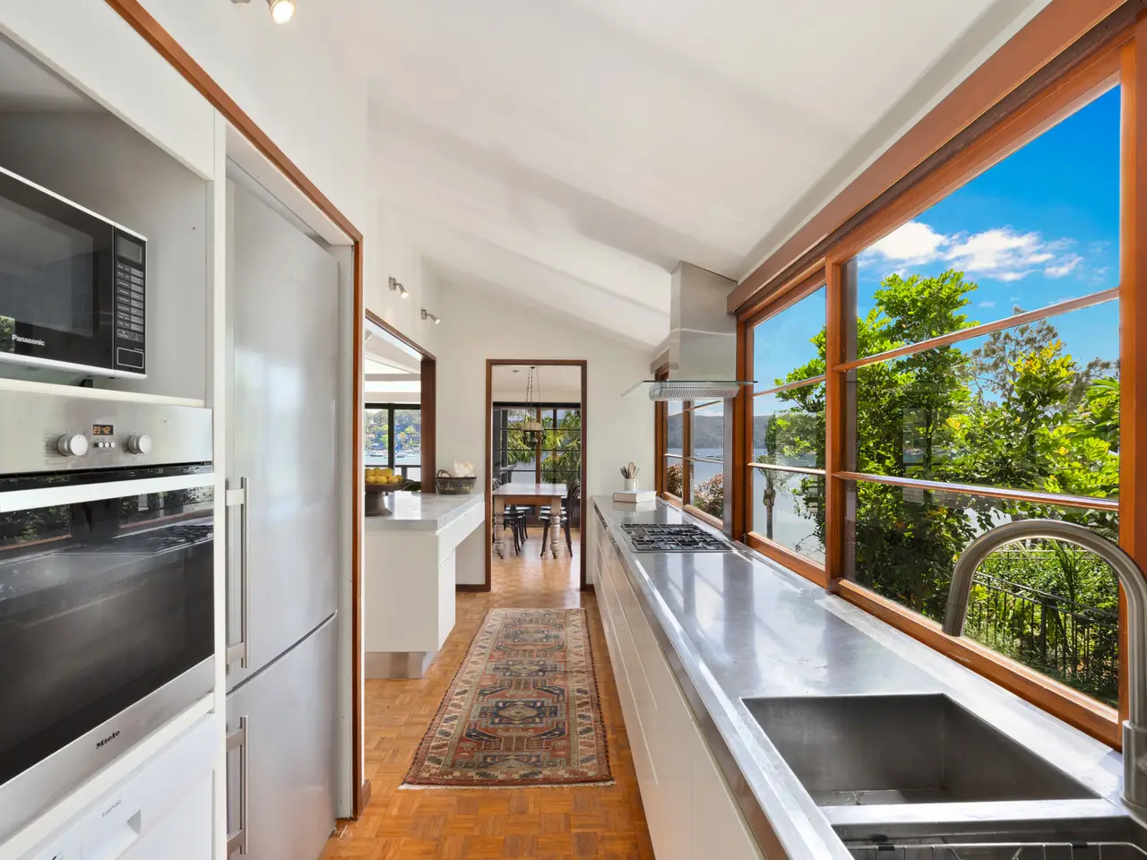 Par excellence. It's not a term to throw around lightly, but this waterfront beauty is well-deserving of the title; architecturally designed by Geoffrey Watson, the home is at once earthy, simple and luxurious. The interiors are framed by polished timber, sandstone and glass; these organic textures combine with its clean, uncluttered lines as a complement to the stunning Pittwater backdrop. Vast banks of mullioned doors open the home entirely to waterfront decks, resort-style pool and finished boathouse. An impressive entertainer, the gleaming chef's kitchen features a polished marble island and stainless steel benchtops, Miele appliances plus butler's pantry; the lower level is fully self-contained and perfect for weekend guests – it's also DA approved as a fulltime or holiday rental. In addition, the boathouse and its surrounding deck and lawns are an absolutely captivating spot for entertaining, right on the waterfront. - Stunning design, inside and out; polished timber and sandstone - Privately sited on the waterfront parcel; dazzling Pittwater views - Fluid, open layout, mullioned sliding doors to the expansive decks - Ground level is a fully self-contained suite offering dual entrances - Streamlined kitchen with butler's pantry and European appliances - Enormous saltwater pool, level lawns, guest suite in the boathouse - DA approval for dual-occupancy or holiday letting on lower level - Master with ensuite and deck access; all bedrooms include built-ins - Finished studio under the double garage + ample offstreet parking - Wood fireplace, parquetry and hardwood floors, Japanese soak tub - Exquisite sandstone pathways and terraces right to the waters' edge